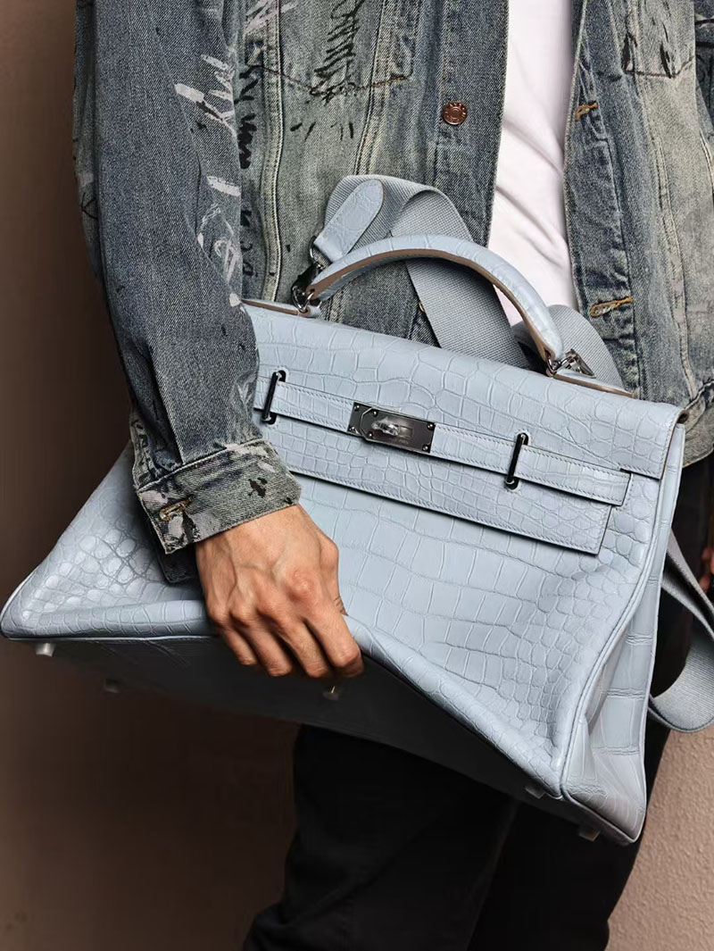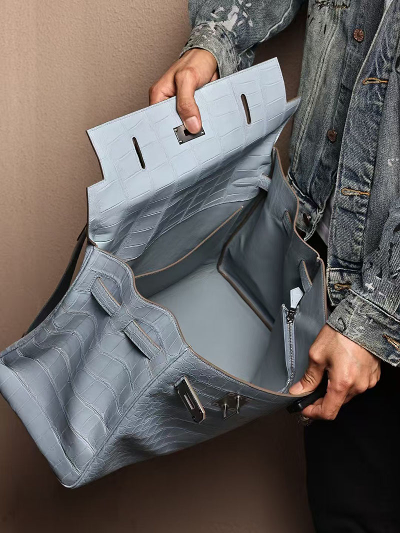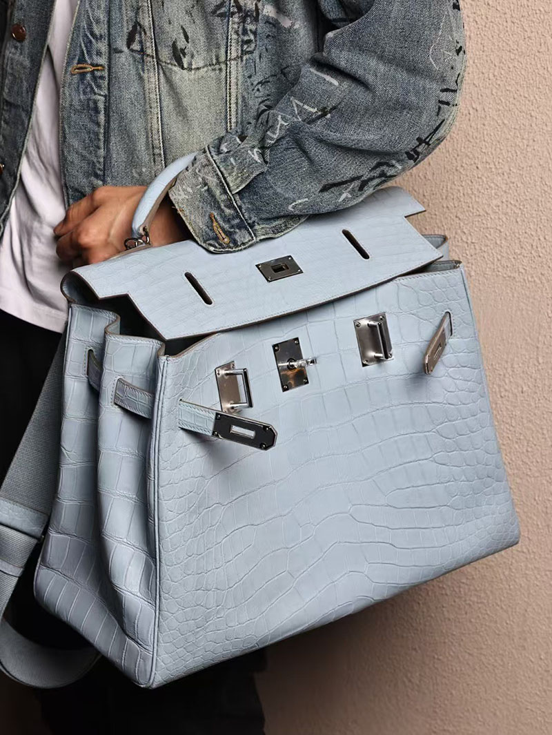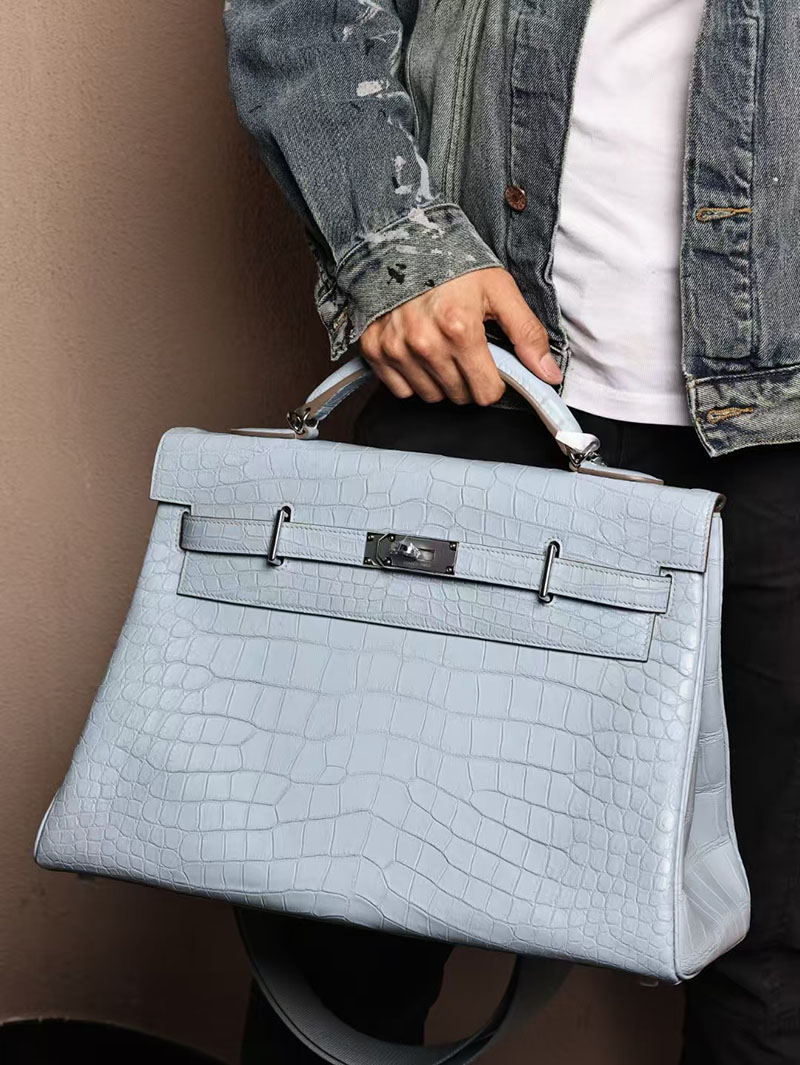 エルメス メンズバッグ 新作 HERMES マキシケリー 42cm 内縫い ブルーブリュム クロコダイル ニロティカスマット シルバー金具 2524043
