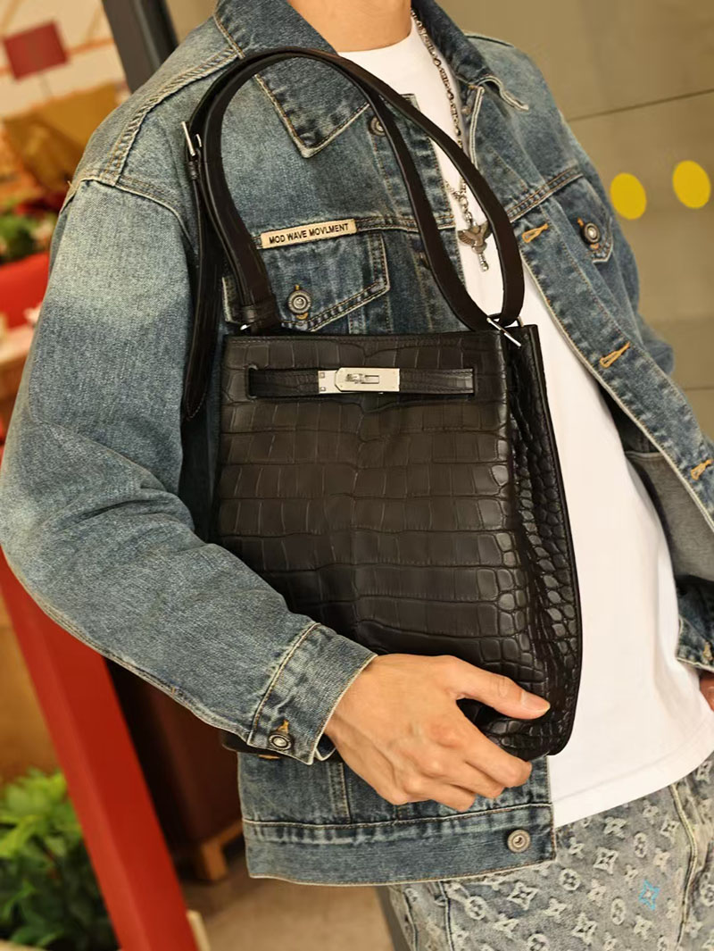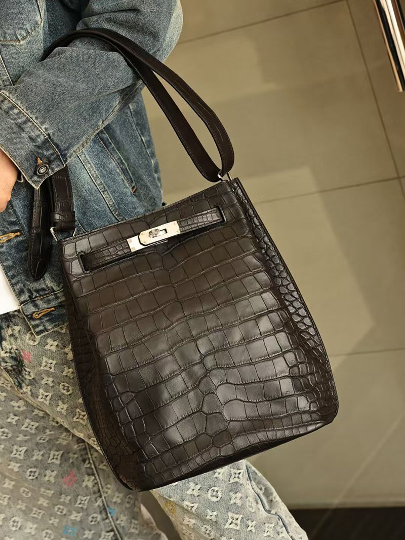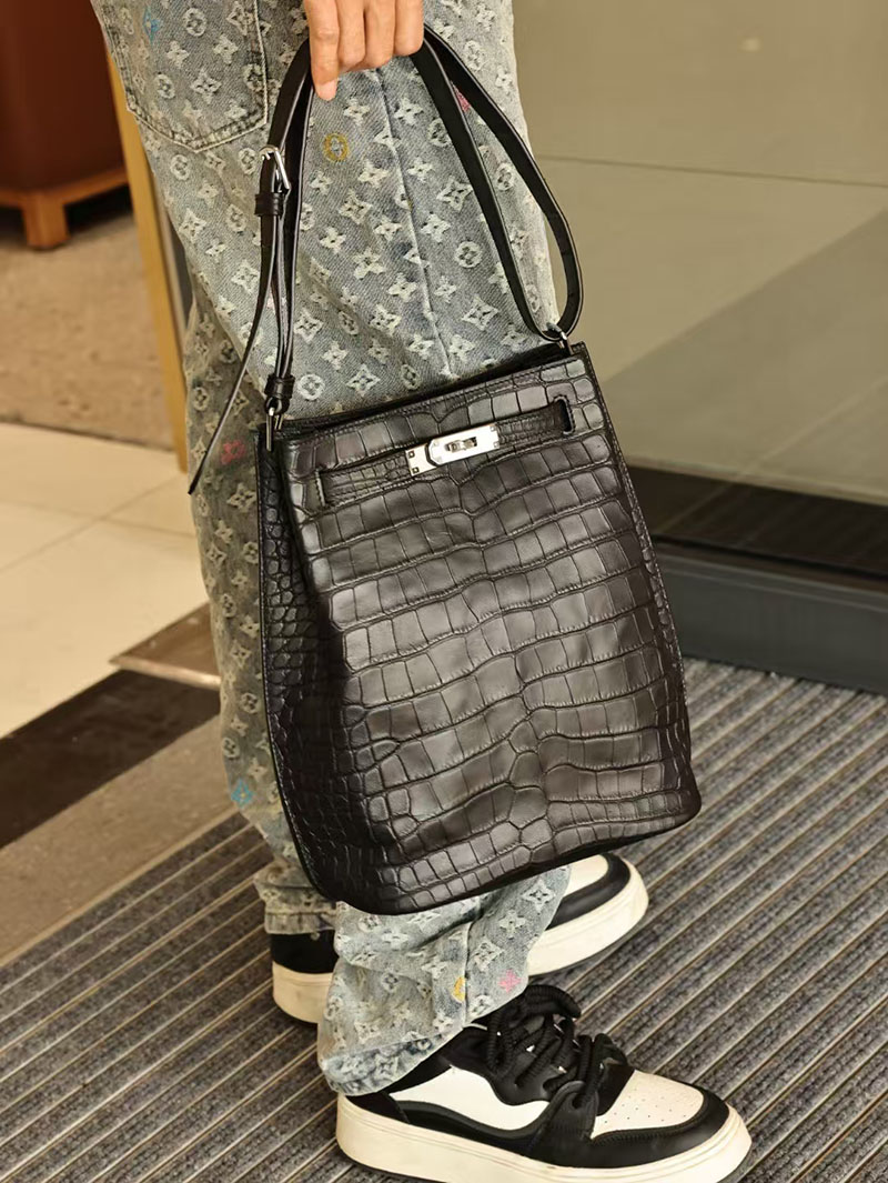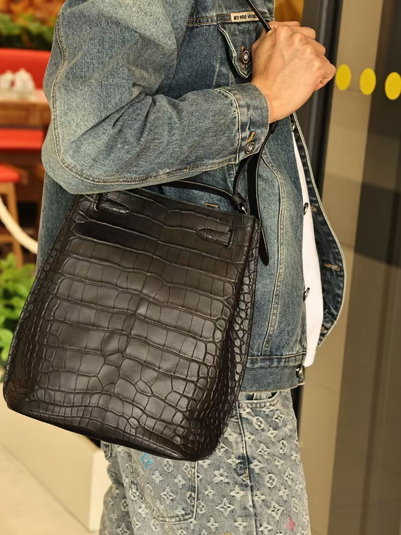 エルメス メンズバッグ 新作 HERMES ソーケリー Sokelly 黒 ブラック クロコダイル アリゲーターマット シルバー金具 2524057