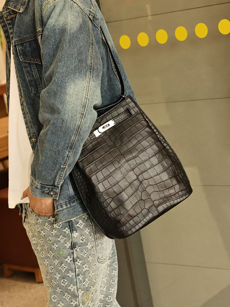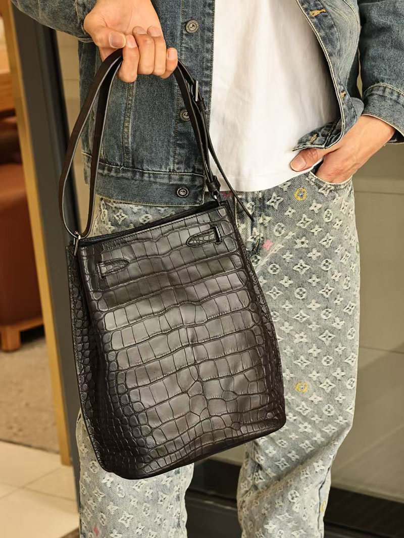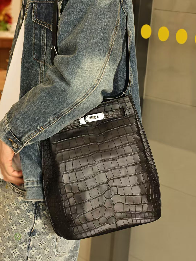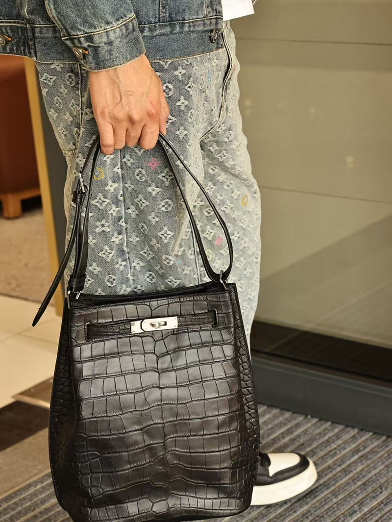 エルメス メンズバッグ 新作 HERMES ソーケリー Sokelly 黒 ブラック クロコダイル アリゲーターマット シルバー金具 2524057