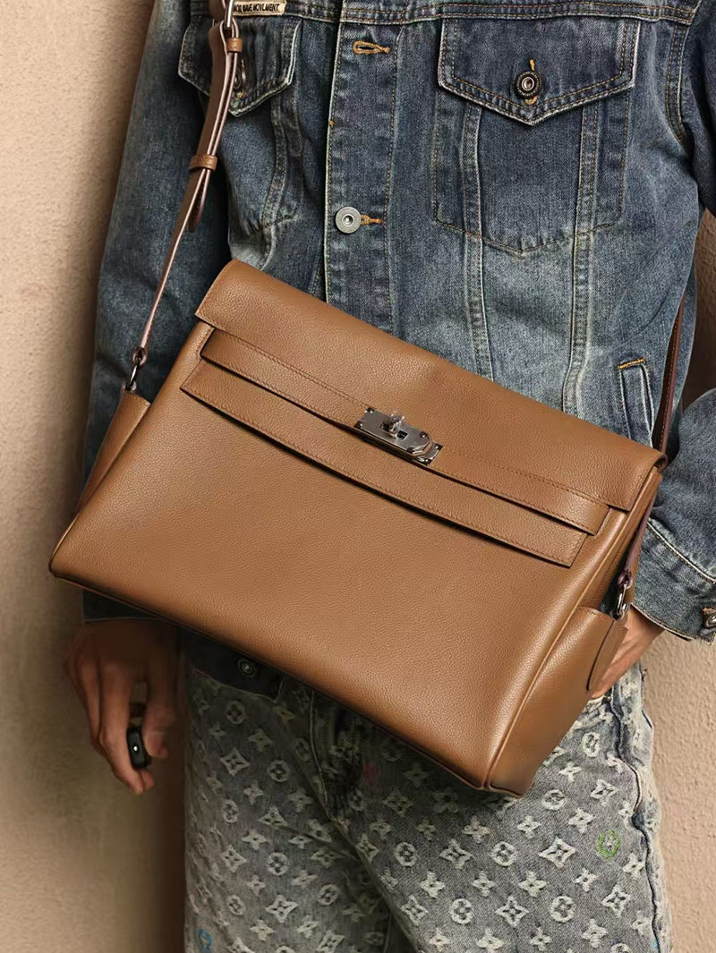 エルメスコピー メンズバッグ HERMES ケリーメッセンジャー ベージュドゥワイマール エバーカラー シルバー金具 2524073