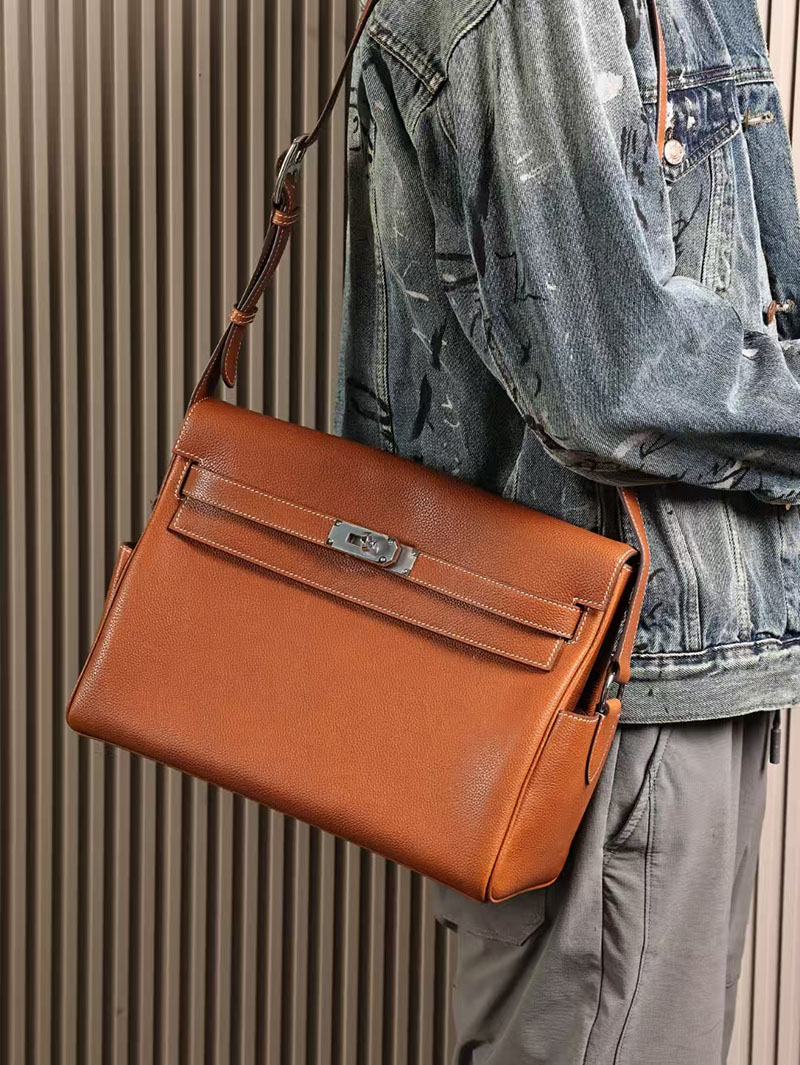 エルメスコピー メンズバッグ HERMES ケリーメッセンジャー ゴールド エバーカラー シルバー金具 2524075