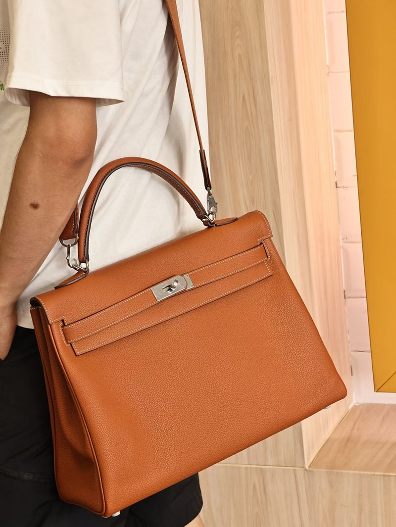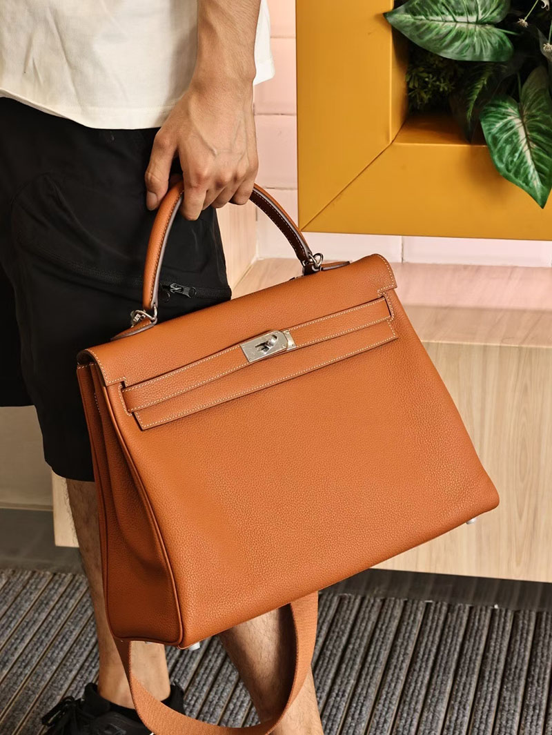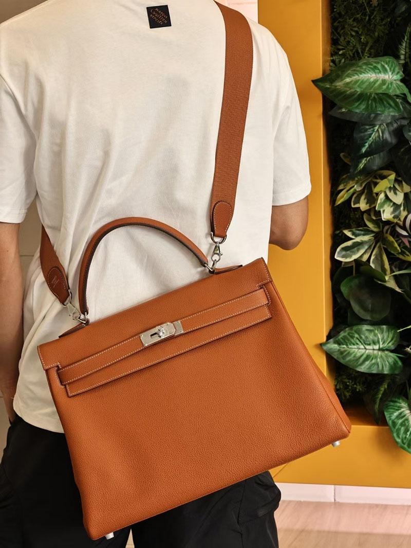 エルメスコピー メンズバッグ HERMES ケリー40 メンズ ゴールド トゴ シルバー金具 2524111