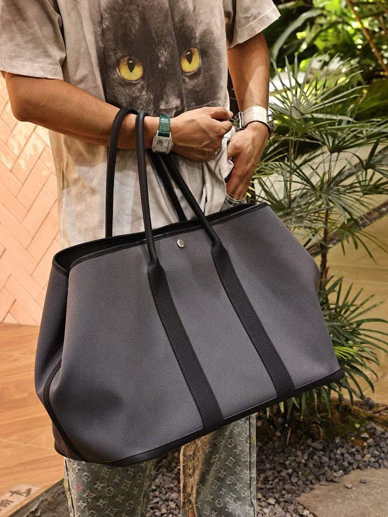 エルメス HERMES ガーデンパーティ 49 GM 黒 ブラック/グラファイト ツイルアッシュ/ネゴンダ シルバー金具 2524150