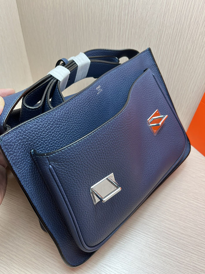 メンズバッグ 人気 HERMES スティーブ・ブザス 35 ブルーロイヤル トリヨンクレマンス シルバー金具 26210499 エルメス メンズ ショルダーバッグ