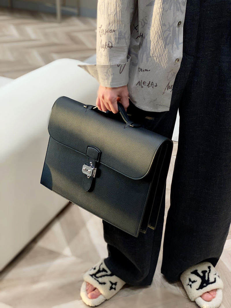 エルメス メンズバッグ 人気 HERMES サックアデペッシュ 38 黒 ブラック トゴ シルバー金具 2627390 エルメス メンズ ビジネスバッグ