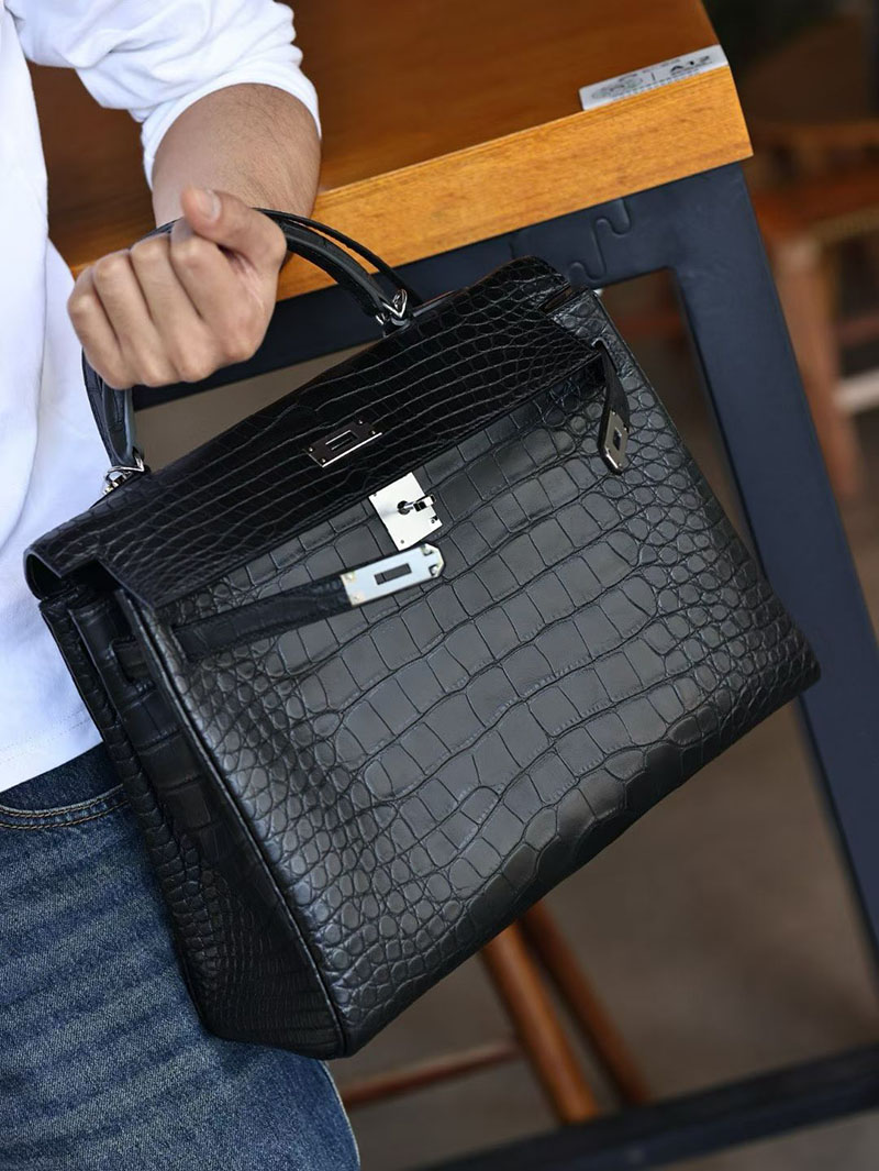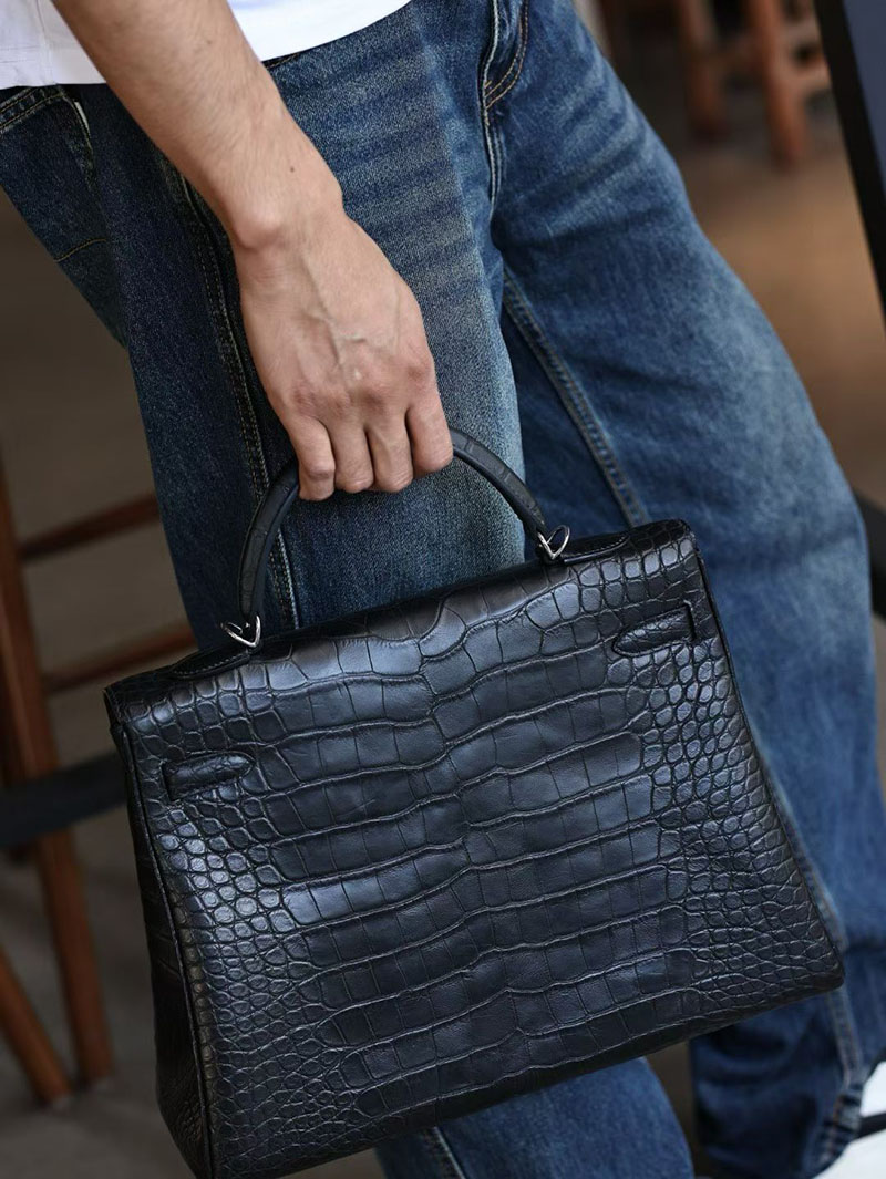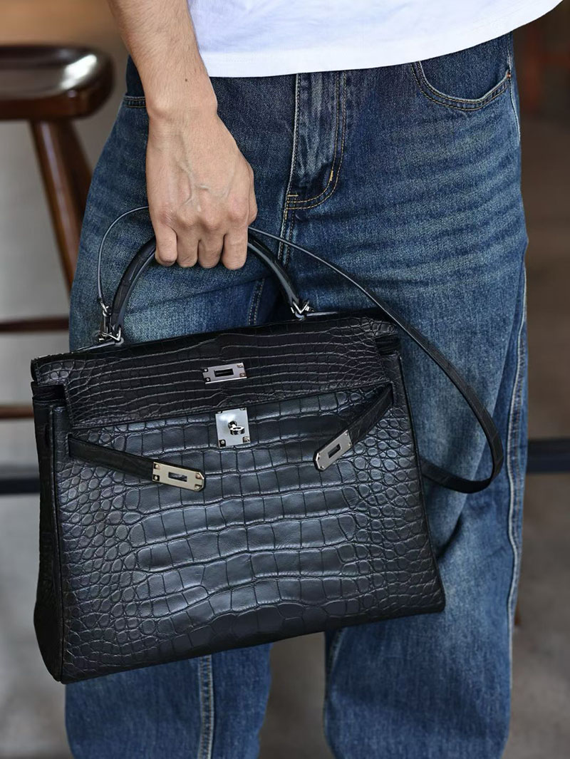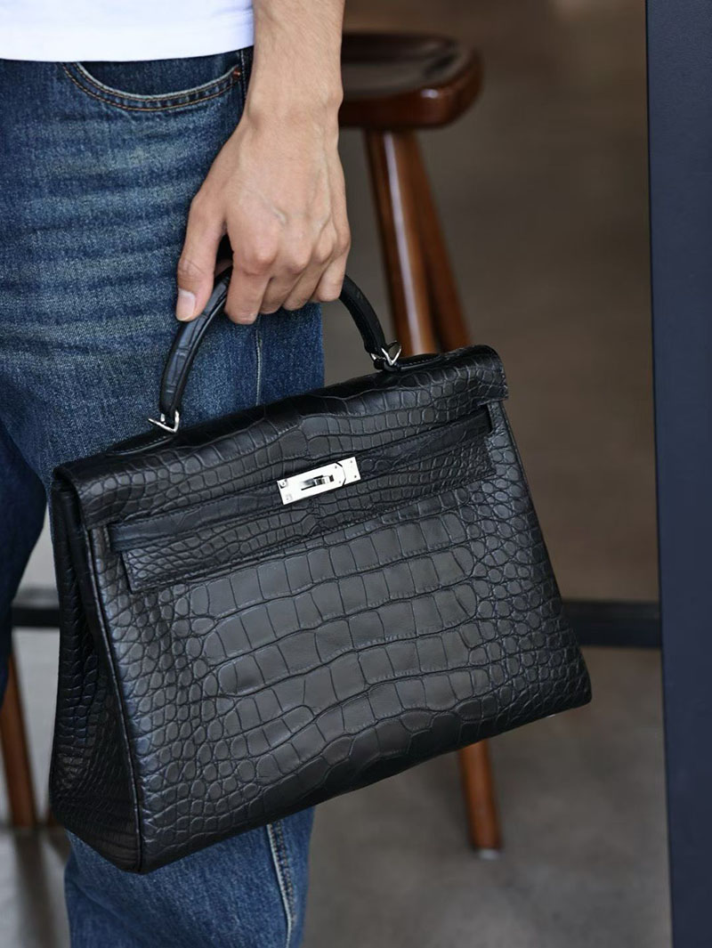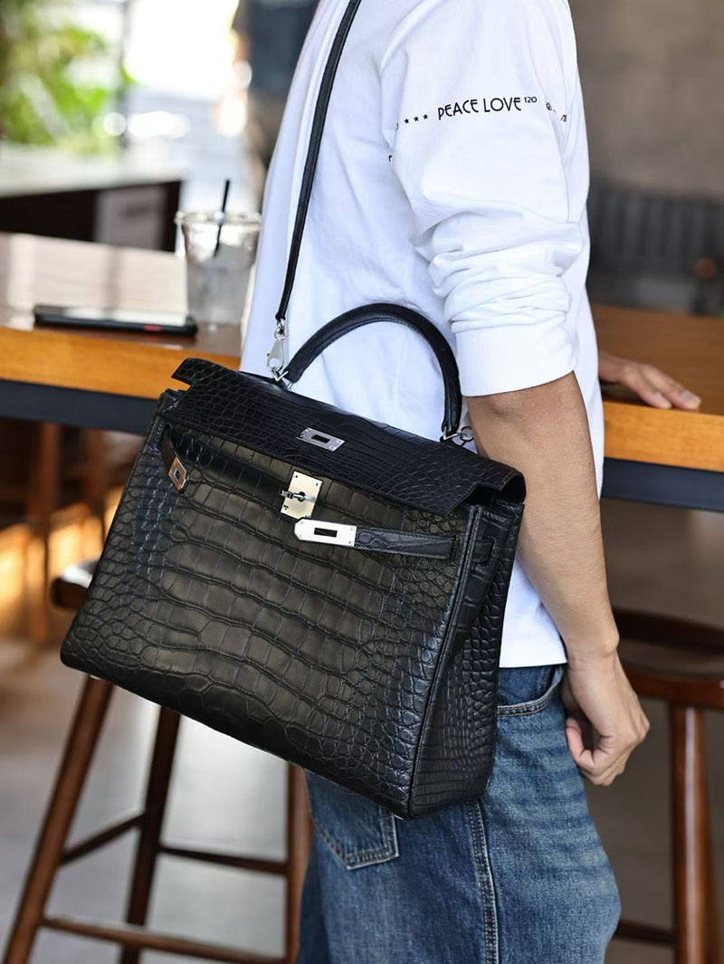 エルメス メンズ ショルダーバッグ HERMES ケリー35cm 内縫い 黒 ブラック クロコダイル シルバー金具 2627484 エルメス専門店 おすすめ