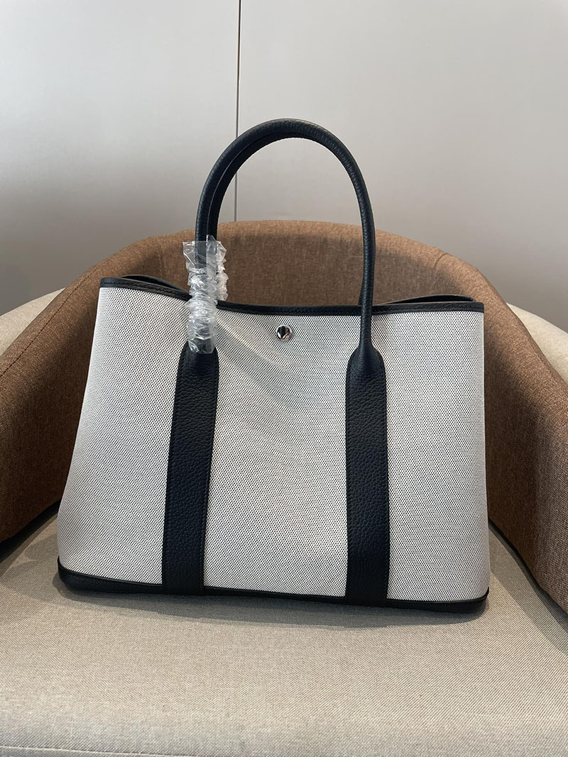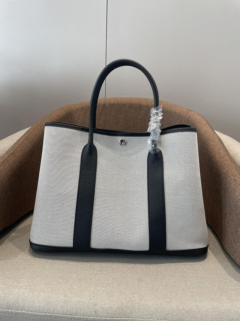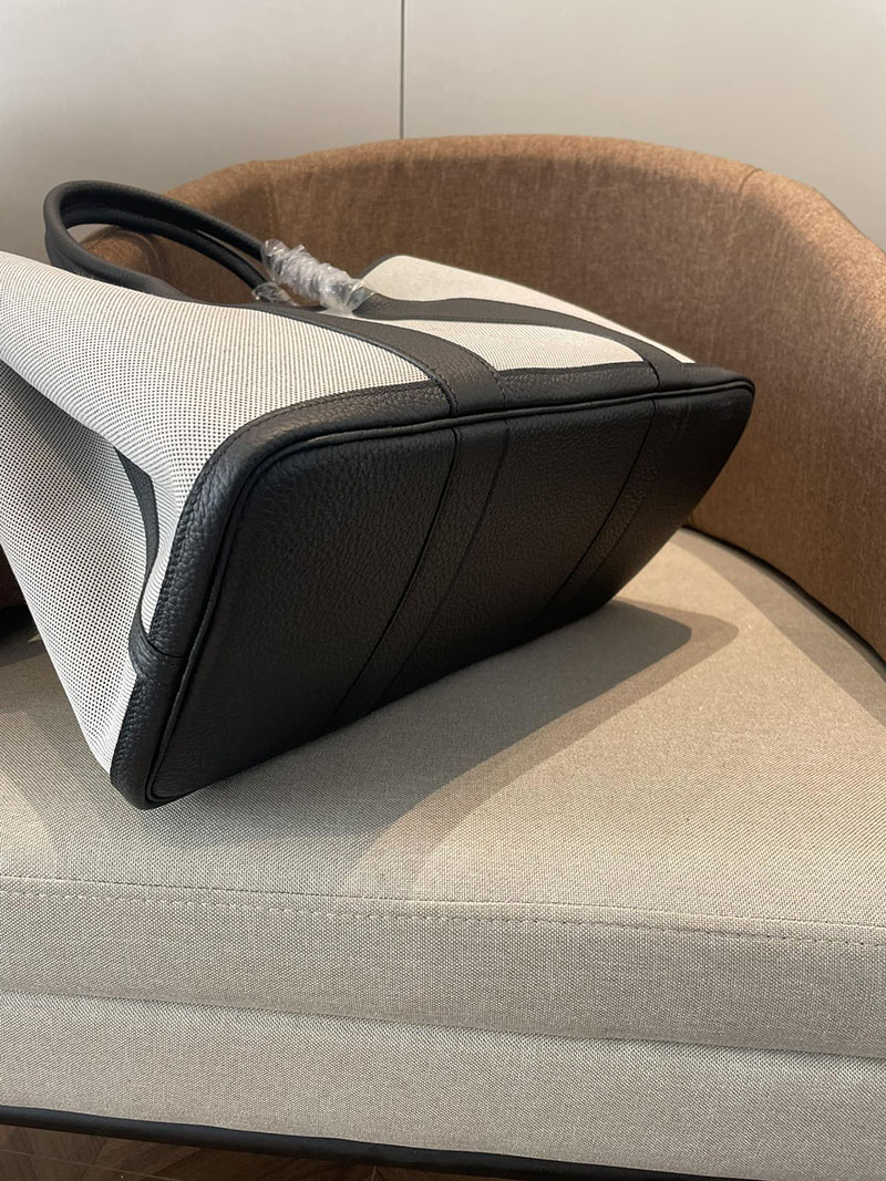 エルメス ガーデンパーティ 30 TPM 黒 ブラック/クレ ネゴンダ/トワルミリタリー シルバー金具 2520802 エルメス刻印ガーデンパーティ