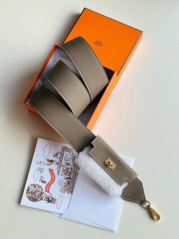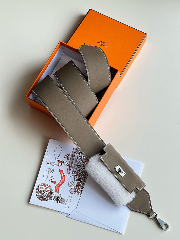 エルメス バンドリエール ケリー・ポケット プラッシュ エトゥープ スイフト×ムートン シルバー金具 2518430 ケリーポケット バンドリエール