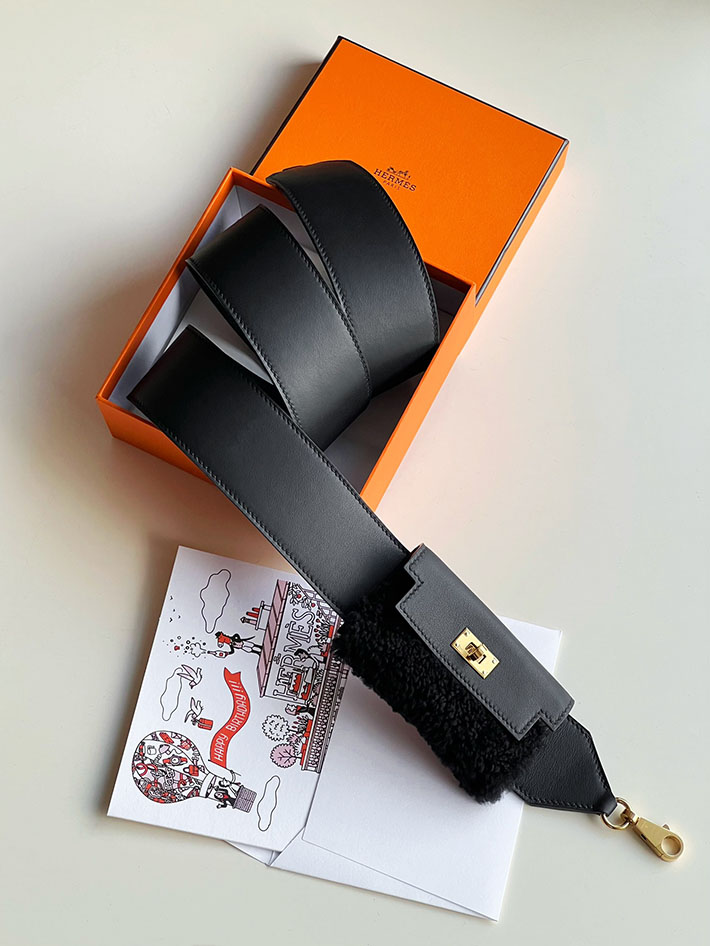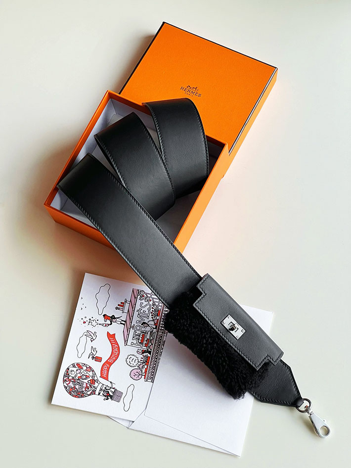 エルメス バンドリエール ケリー・ポケット プラッシュ 黒 ブラック スイフト×ムートン シルバー金具 2518431 エルメス エブリン バンドリエール