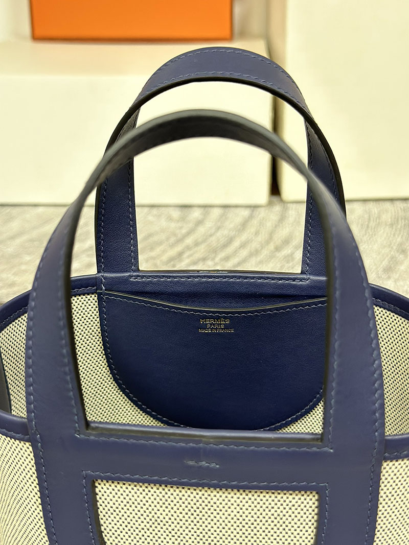 エルメス ハンドバッグ イン・ザ・ループ ブルーサフィール トワルアッシュ/スイフト ゴールド金具 2630334 エルメス インザ ループ サイズ