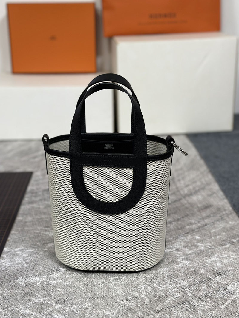 エルメス ハンドバッグ イン・ザ・ループ ブラック トワルアッシュ/スイフト シルバー金具 2630337 エルメス バケツ 型 バッグ