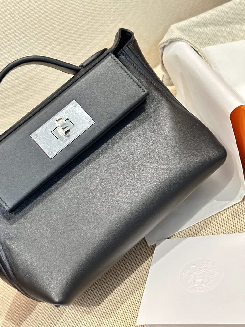 エルメス 24/24 ミニ 定価 エルメス ミニ ヴァンキャトル 黒 ブラック ヴォー・ヴォリュプト/スイフト シルバー金具 2412858