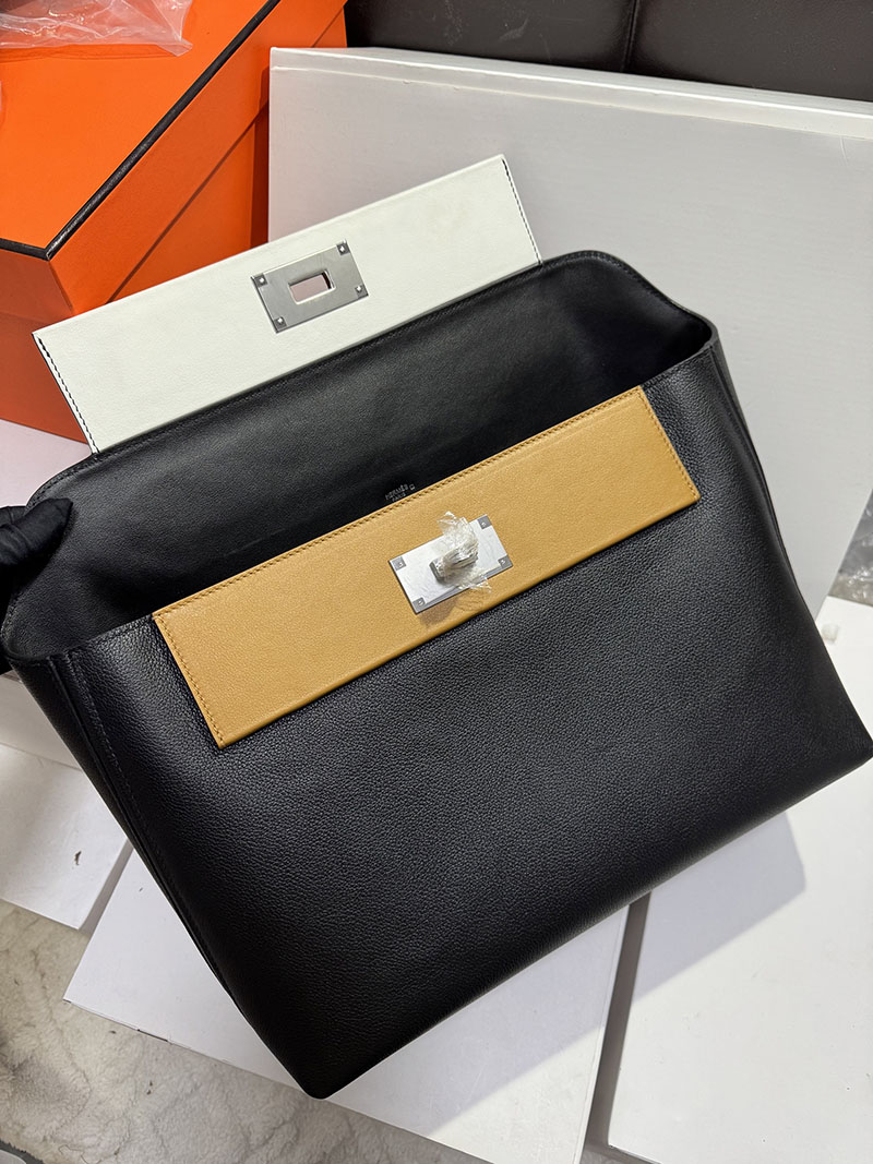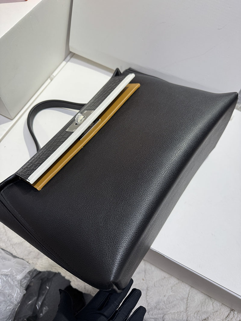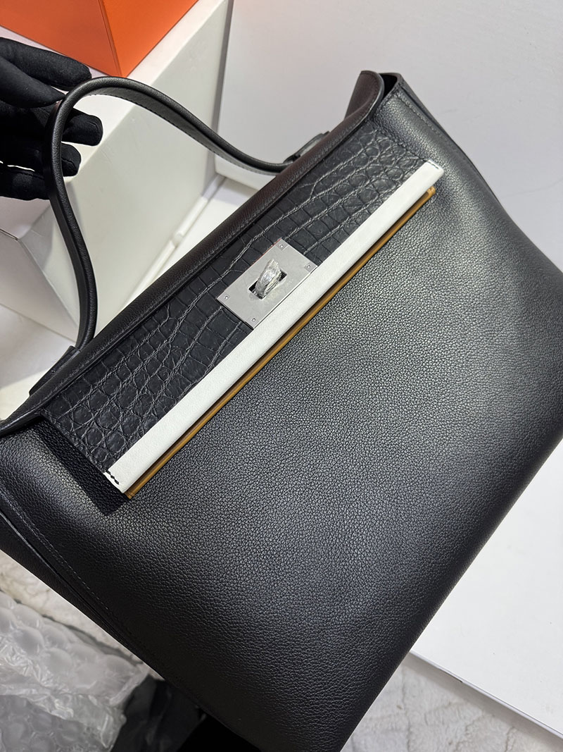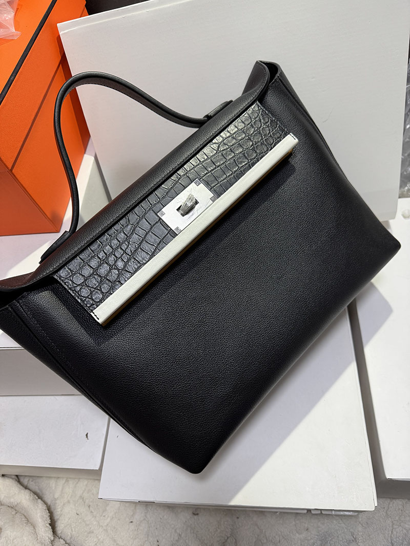 今流行りの バック レディース HERMES サック24/24 35 ヴァンキャトル ブラック/ナタ/ゴールド ヴォー・ヴォリュプト/クロコダイル シルバー金具 2627555