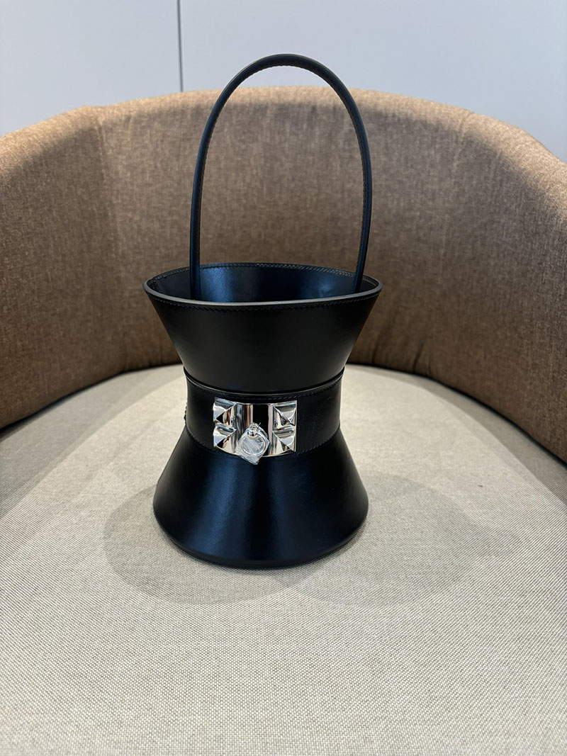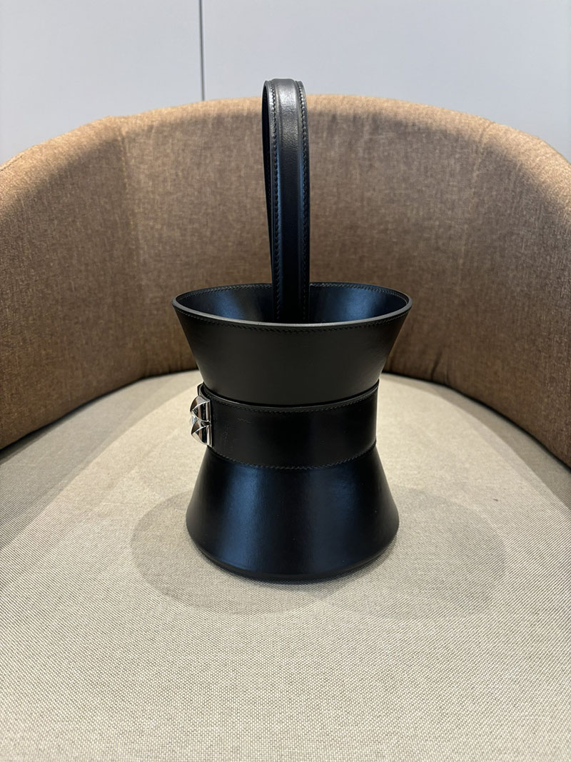 エルメス Hermès Medor bag メドール ミニ ハンドバッグ 黒 ブラック ボックスカーフ シルバー金具 2524509
