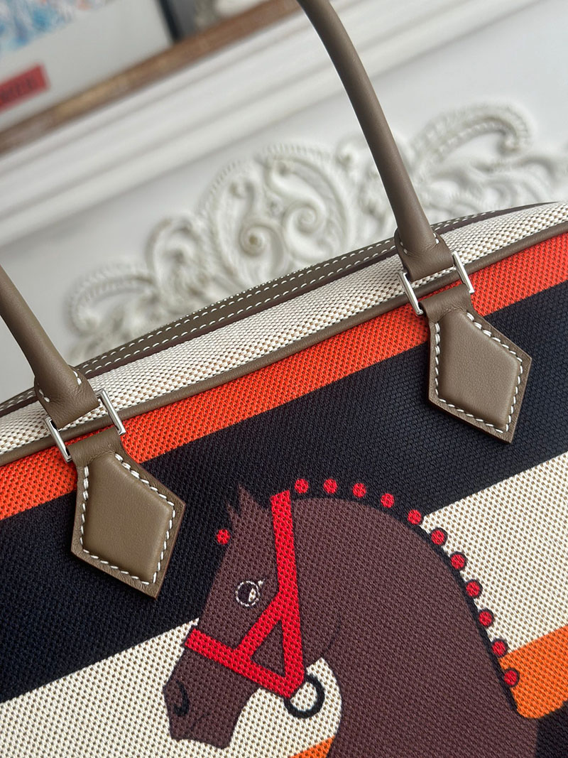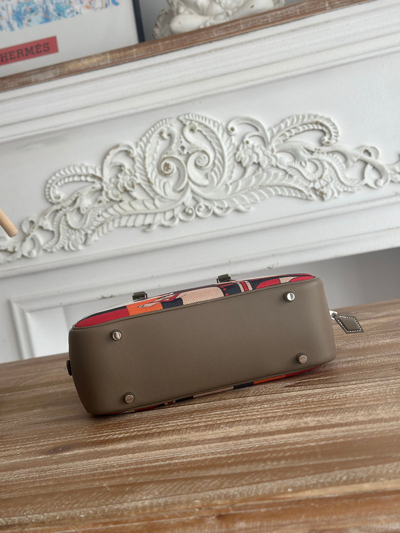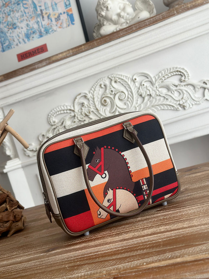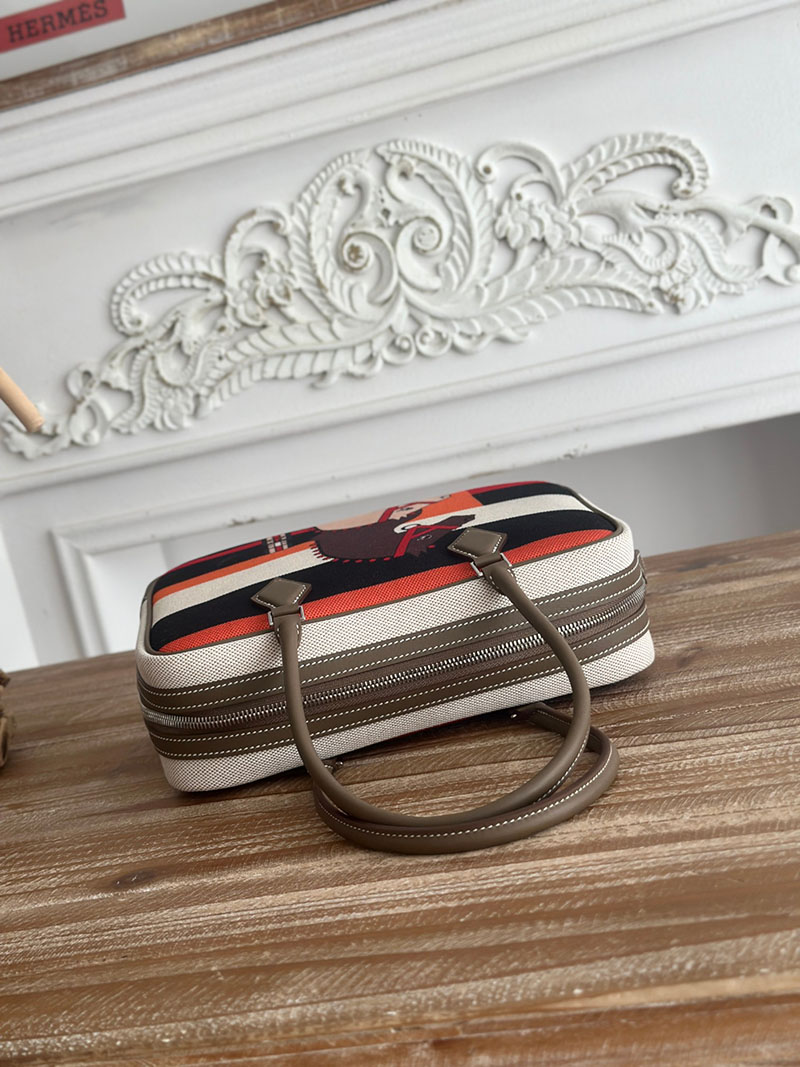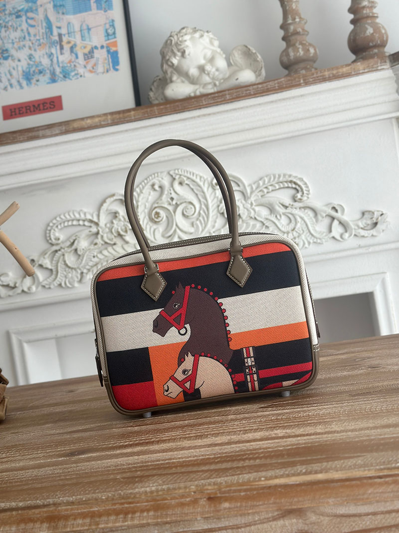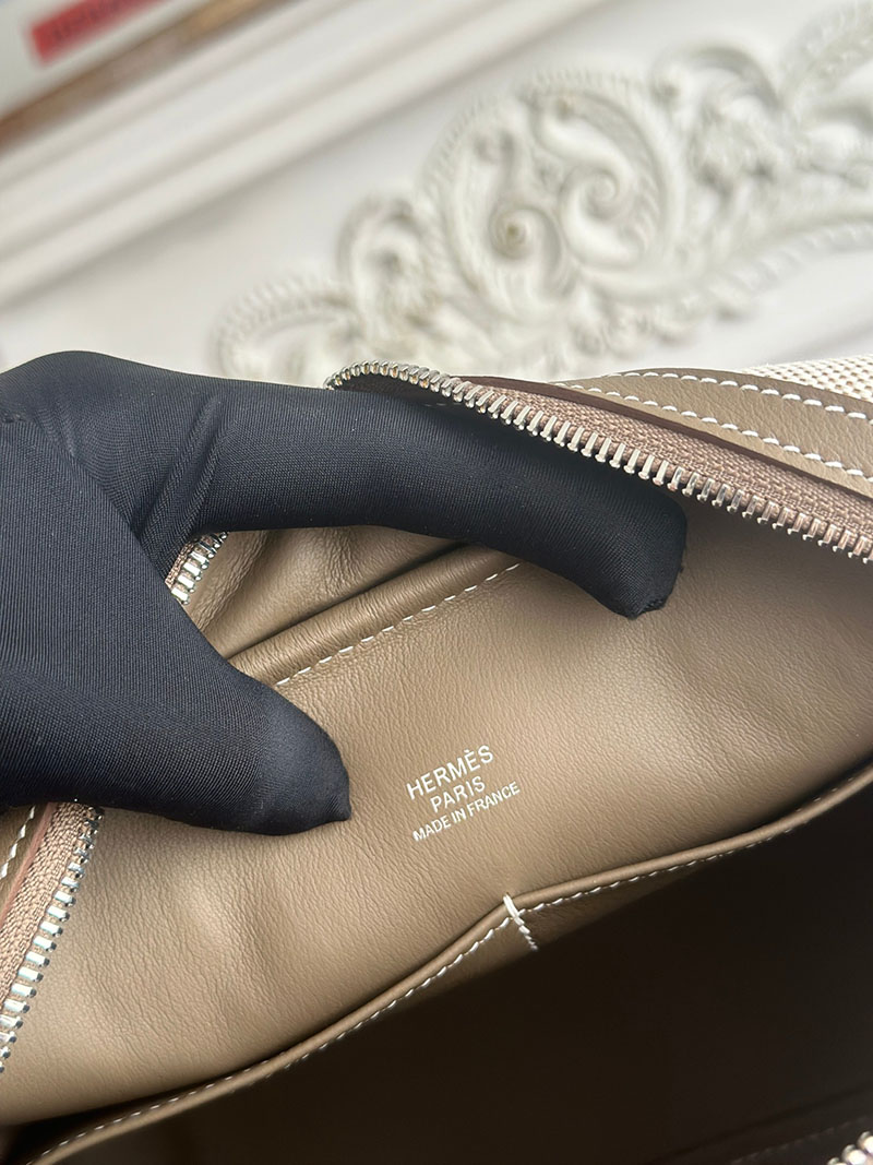 旅行バッグ 一泊 レディース HERMES プリュム 25 ハンドバッグ エトゥープ スイフト/トワルアッシュ シルバー金具 2627700 エルメス 海外通販
