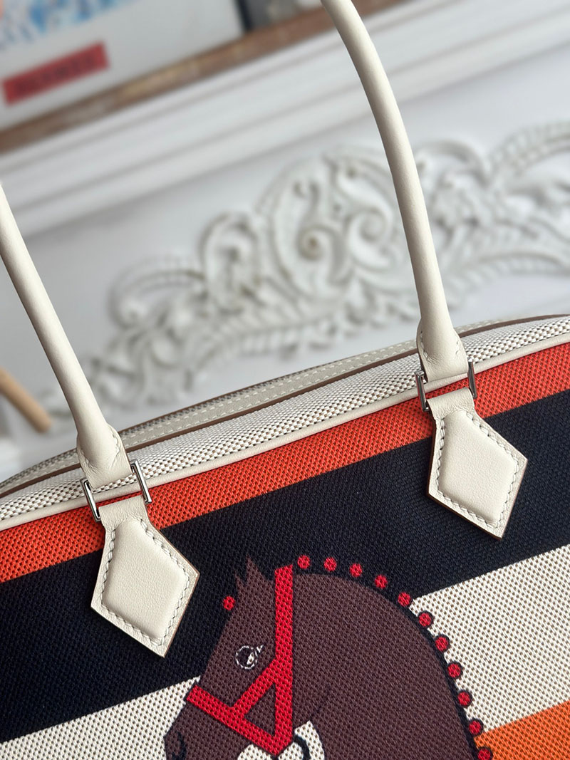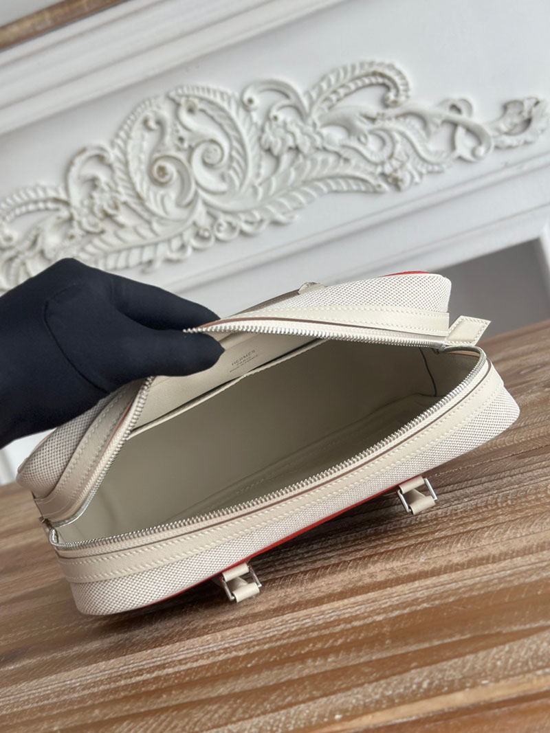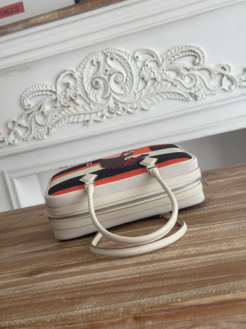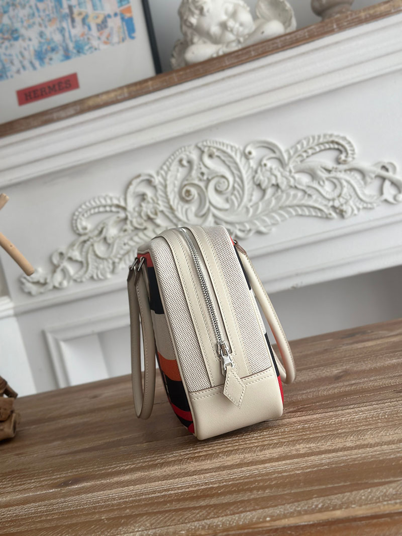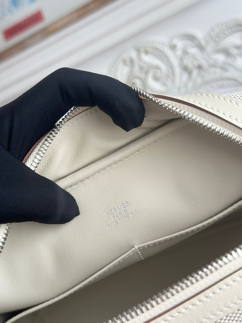 本革 レディース ハンドバッグ HERMES プリュム 25 ハンドバッグ クレ スイフト/トワルアッシュ シルバー金具 2627703 エルメス 海外通販