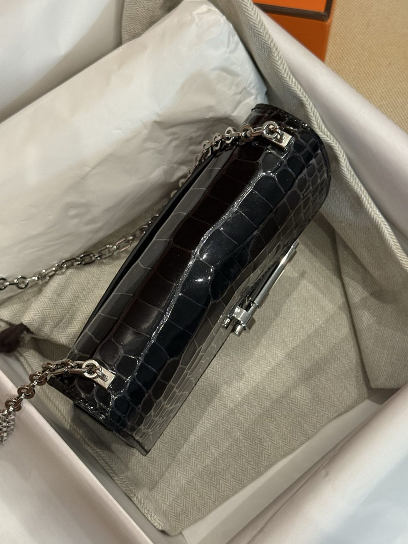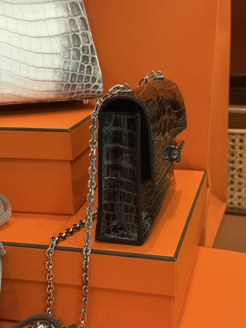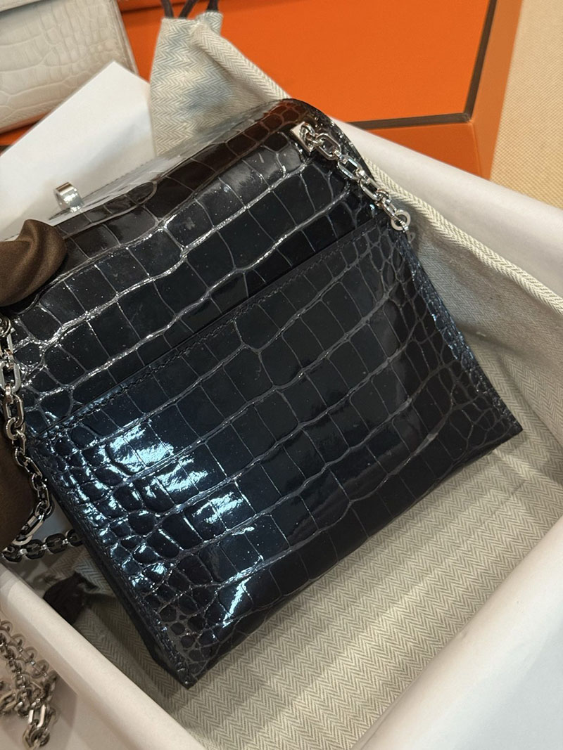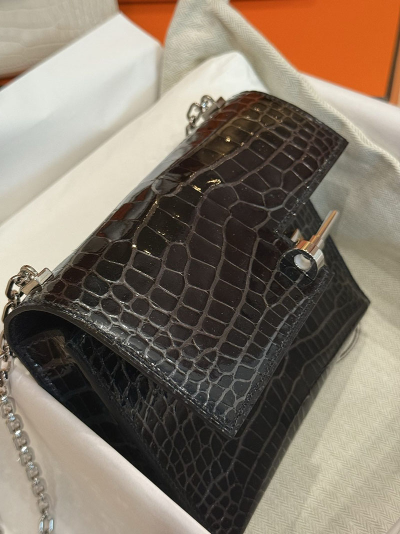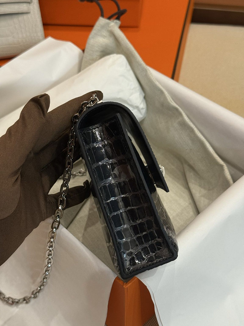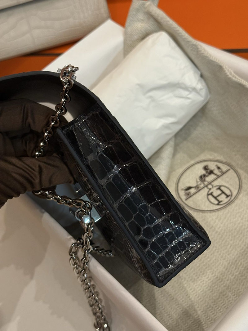 エルメスコピー Verrou Hermès ヴェルーミニ 黒 ブラック クロコダイル アリゲーターマット シルバー金具 2524181