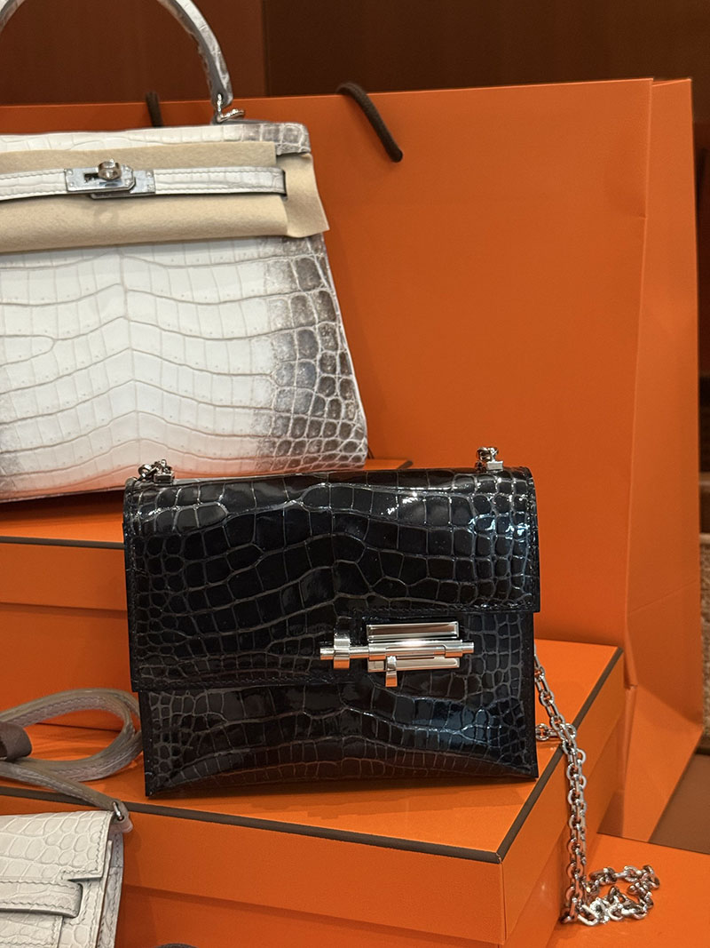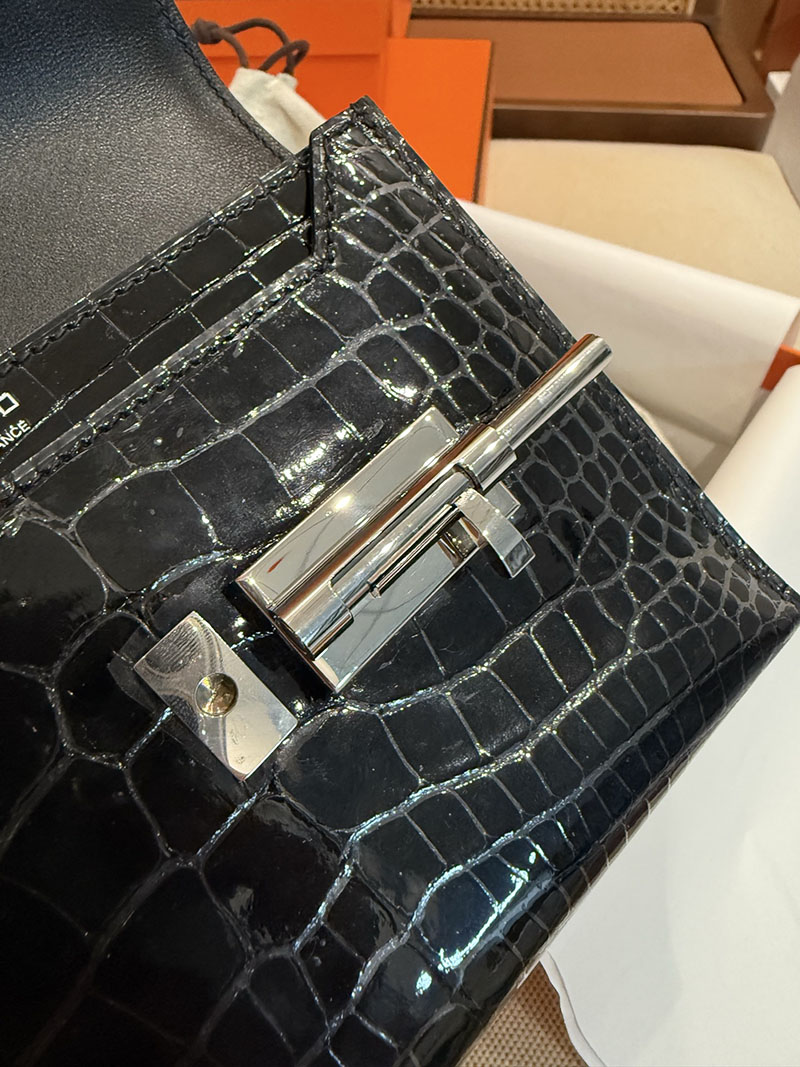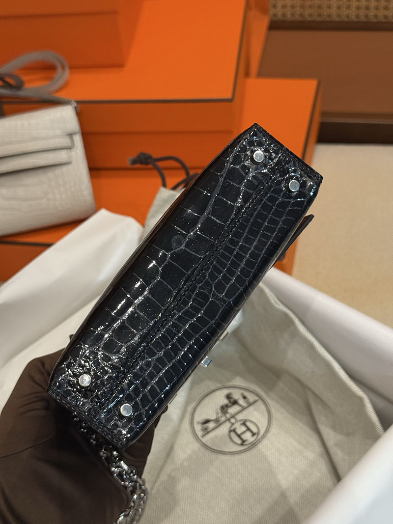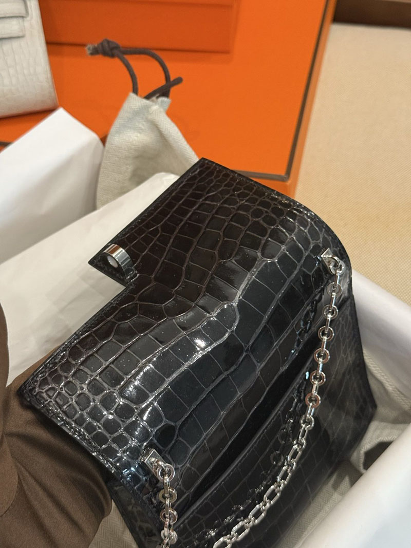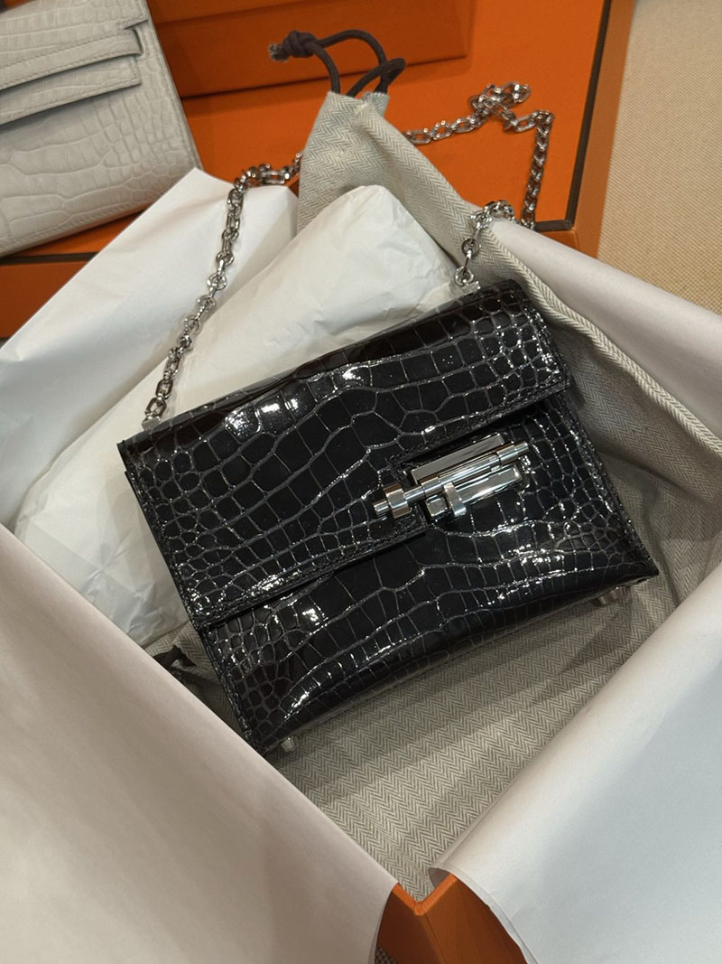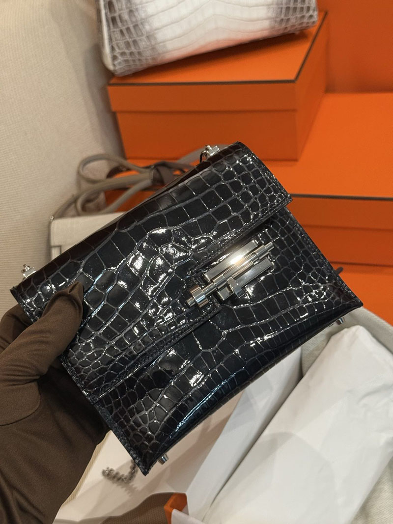 エルメスコピー Verrou Hermès ヴェルーミニ 黒 ブラック クロコダイル アリゲーターマット シルバー金具 2524181