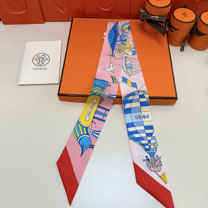 最高級エルメススーパーコピー エルメススカーフコピー ツイリー 鳥・気球柄 ピンク系 レディース 2522749 エルメス スカーフ 人気ランキング