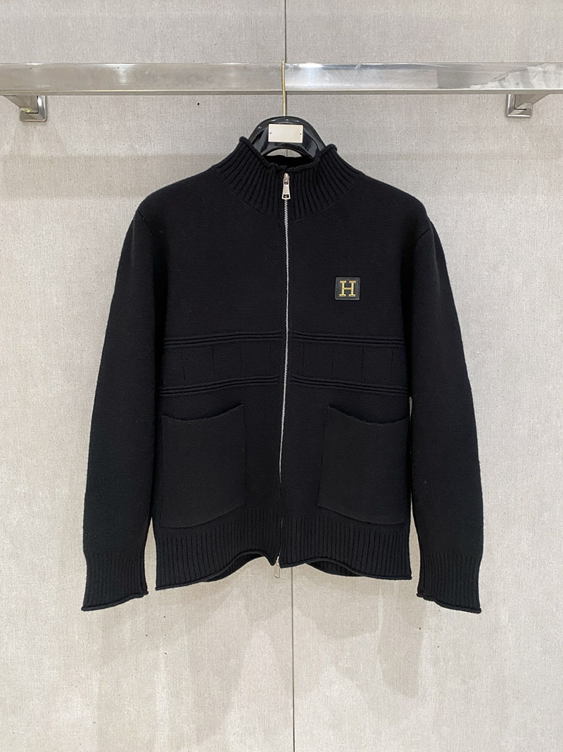 最高級エルメススーパーコピー服 HERMES ジップアップ ジャケット ウール ブラック 2526119 エルメス ジャケット メンズ
