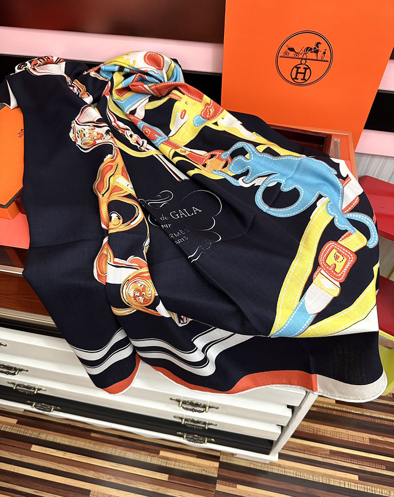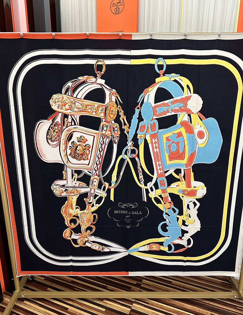 最高級エルメススーパーコピー HERMES カレジェアン ブリッド・ドゥ・ガラ・アップリケ・ピケ 2526183 エルメス マフラー 大判