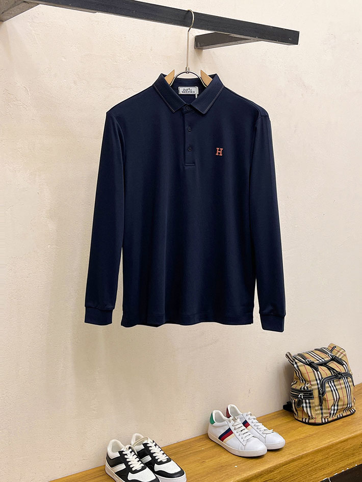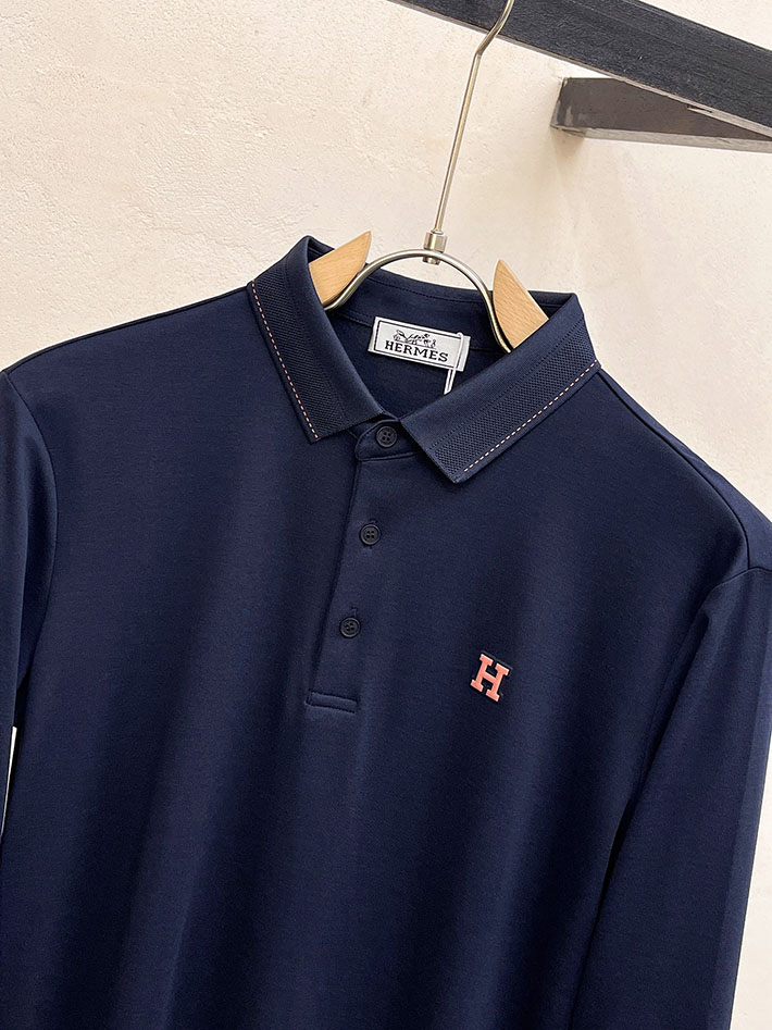 最高級エルメススーパーコピー服 HERMES ポロシャツ H刺繍 メンズ 長袖 ブラック 2525560 メンズ エルメス ポロシャツ