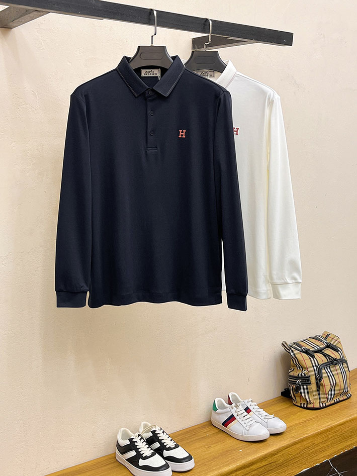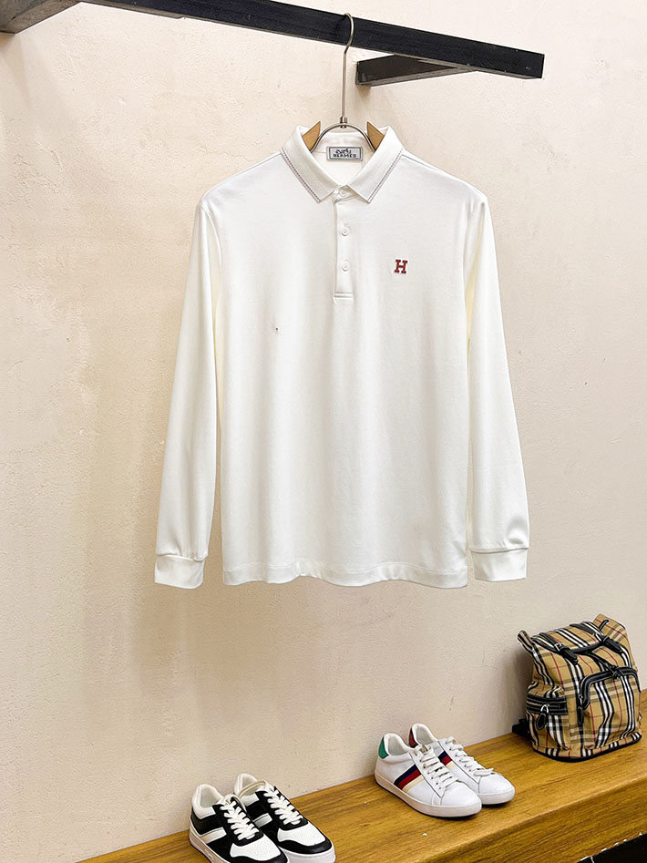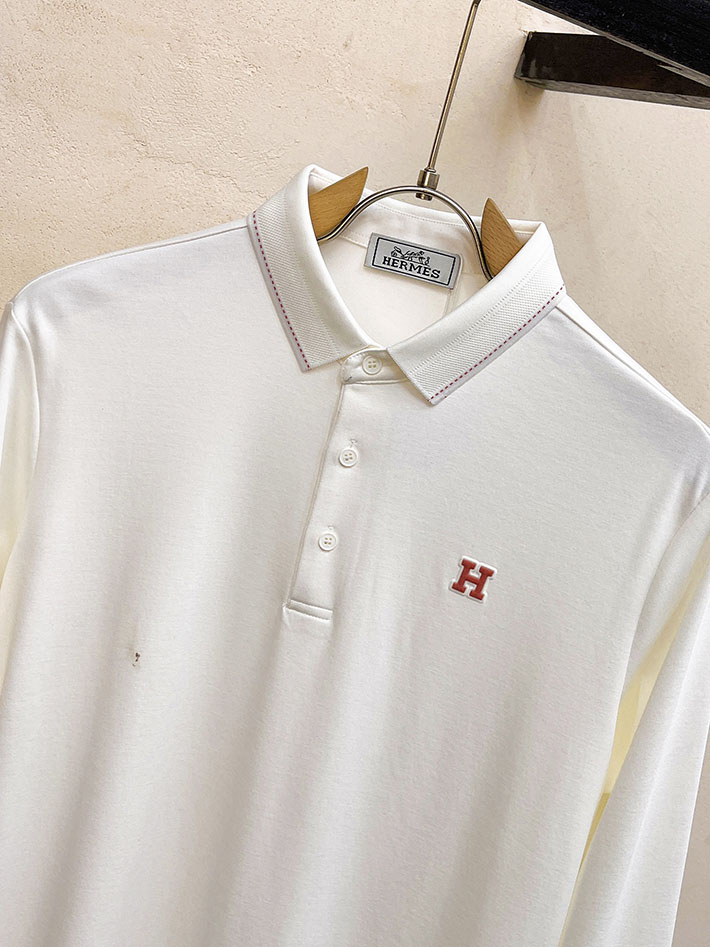 最高級エルメススーパーコピー服 HERMES ポロシャツ H刺繍 メンズ 長袖 ホワイト 2525561 メンズ エルメス ポロシャツ