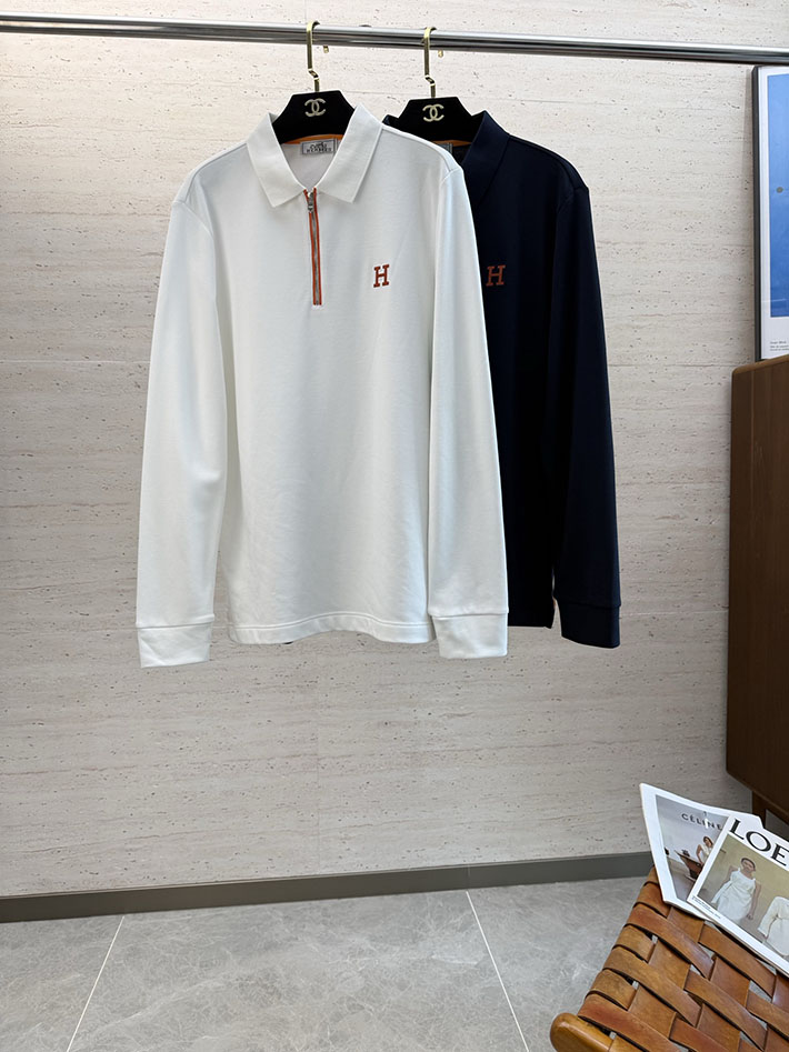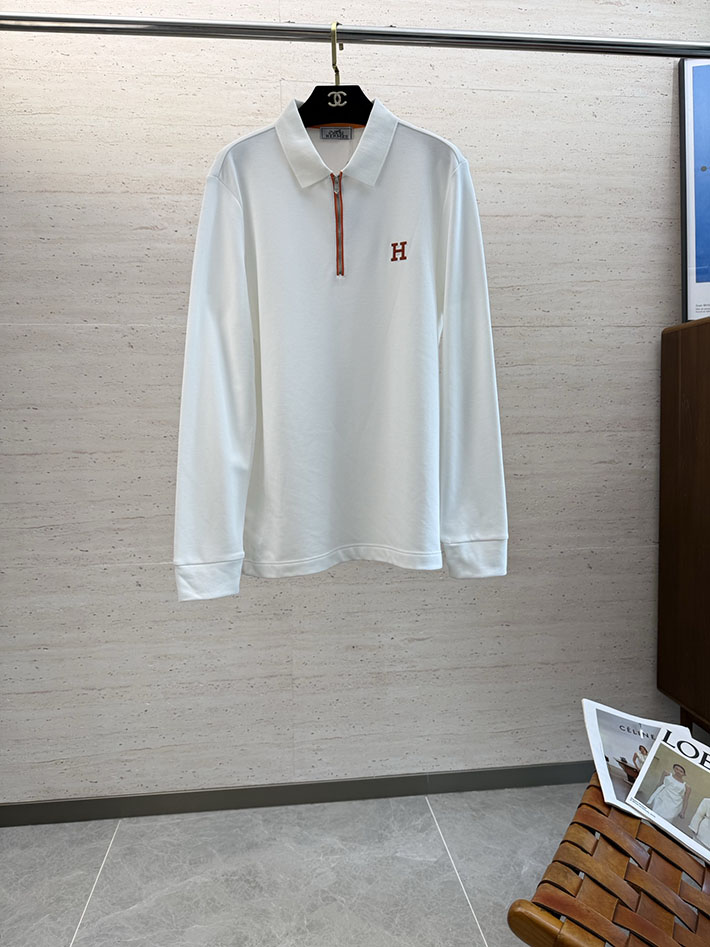 最高級エルメススーパーコピー服 HERMES ポロシャツ 長袖 メンズ 綿100 ホワイト 2525693 エルメス ポロシャツ メンズ