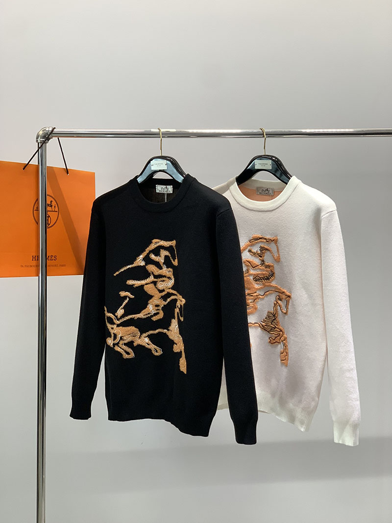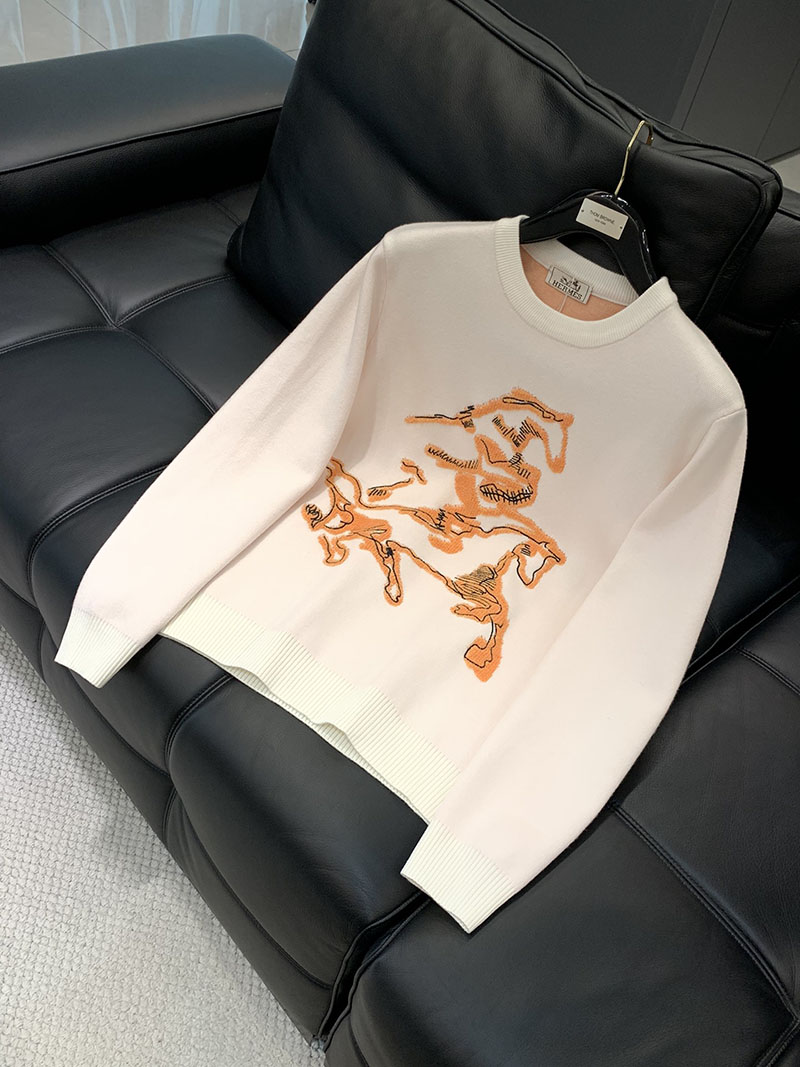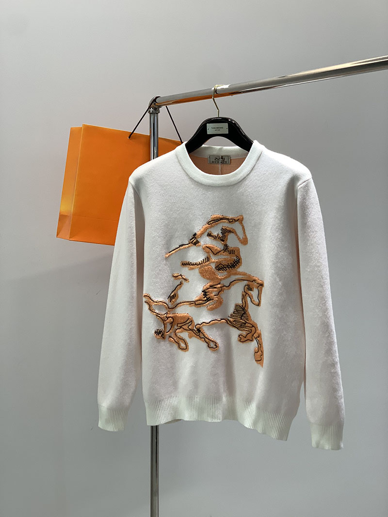 最高級エルメススーパーコピー服 HERMES ニット メンズ セーター レイヤード風 ホワイト 2526127 エルメス セーター メンズ