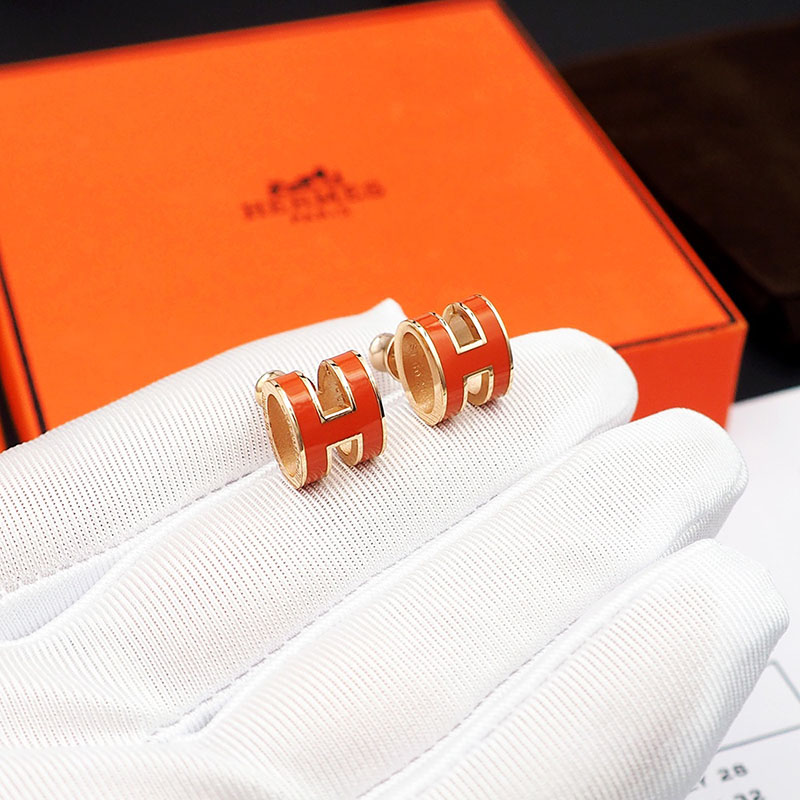 エルメス HERMES ピアス レディース ポップアッシュ ミニ MINI POP H オレンジ シャンパンゴールド金具 2627465 エルメス ミニポップ H 定価
