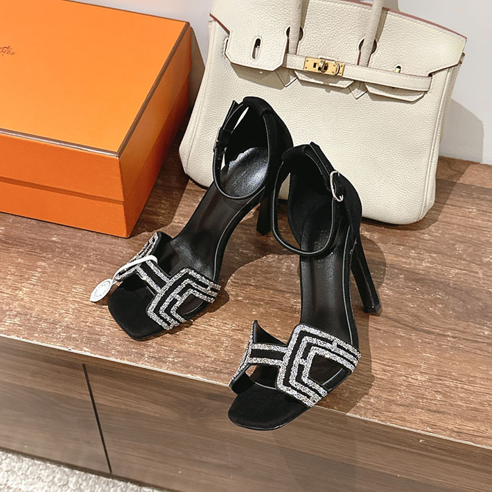 最高級エルメススーパーコピー エルメスサンダルコピー サンダル カットアウト 10.5cm ブラック 2520930 エルメス サンダル ヒール