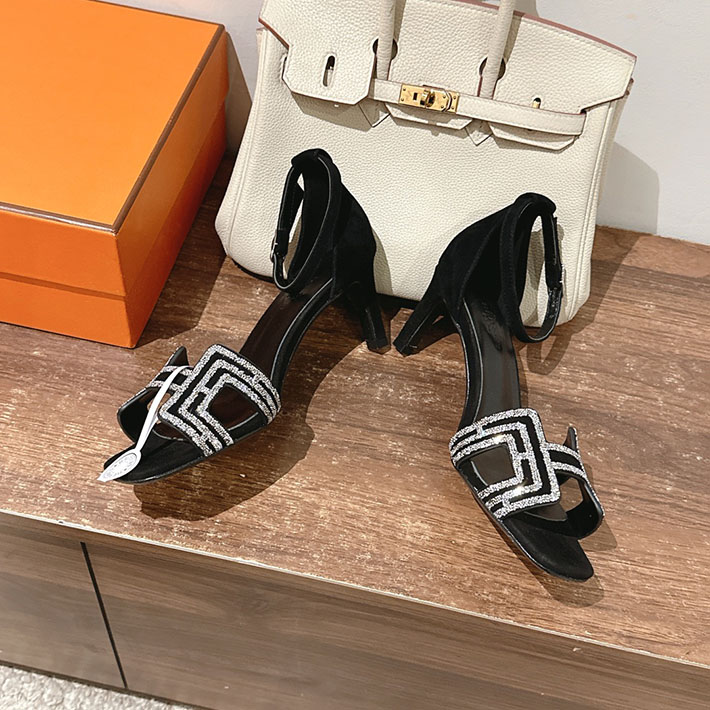 最高級エルメススーパーコピー エルメスサンダルコピー サンダル カットアウト 7cm ブラック 2520935 サンダル有名ブランドレディース