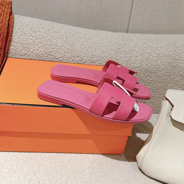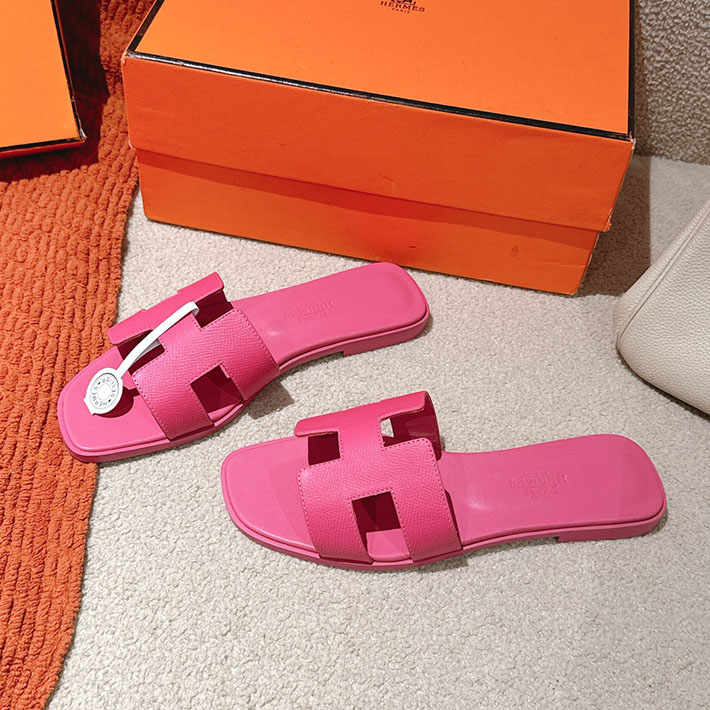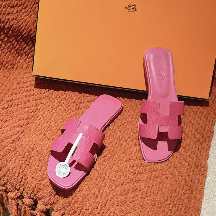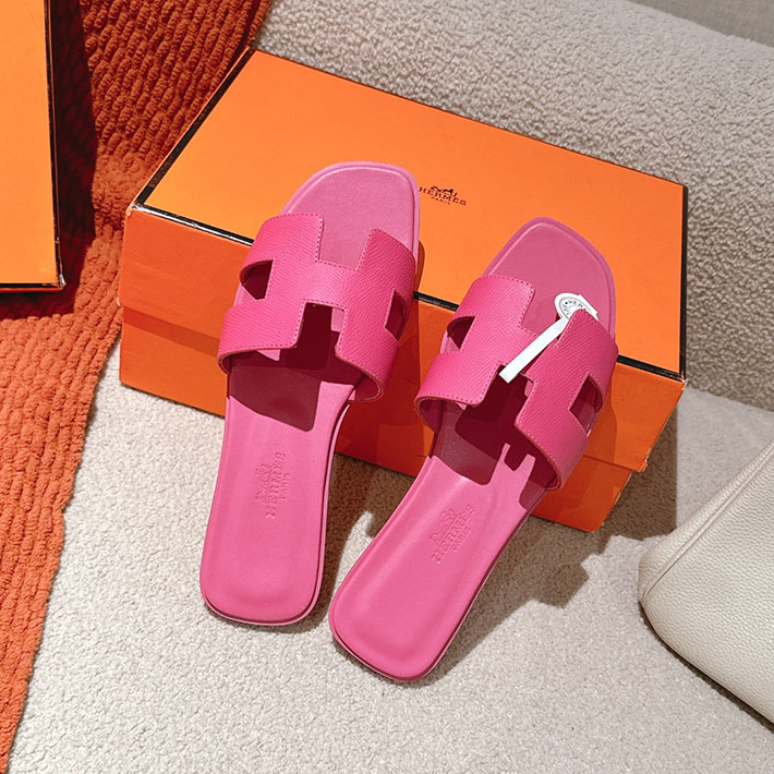 エルメス フラットサンダル シューズ レディース オラン ヴォー・エプソン ローズショッキング 2520947 フラットサンダル レディース