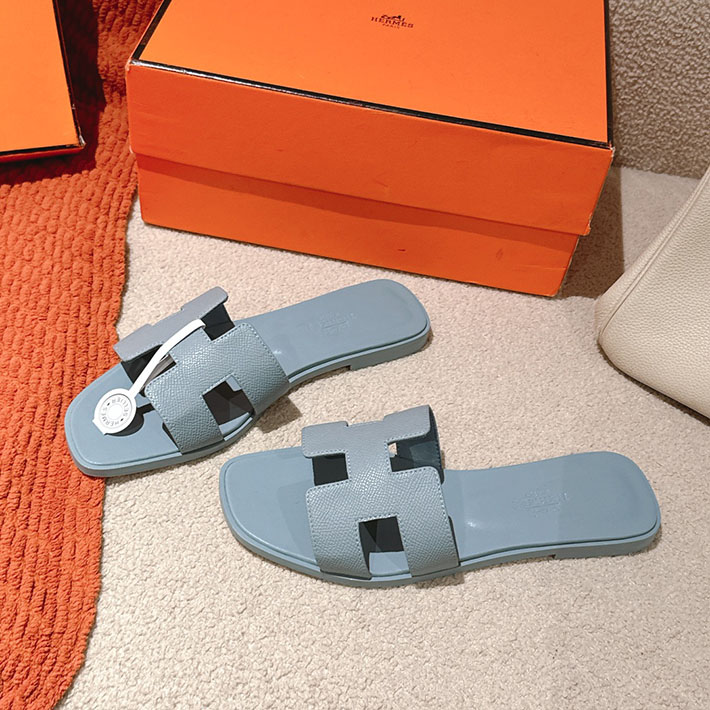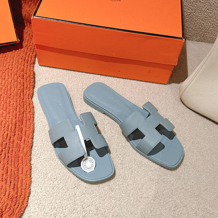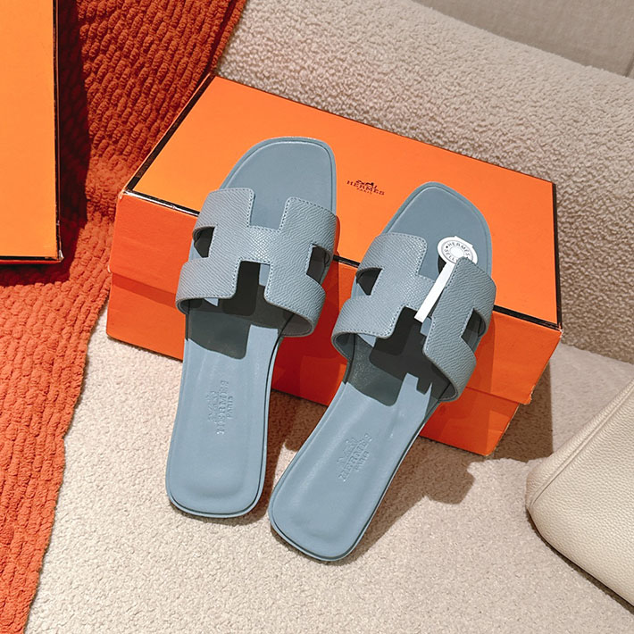 エルメス フラットサンダル シューズ レディース オラン ヴォー・エプソン ブルージーン 2520953 エルメス サンダル オラン