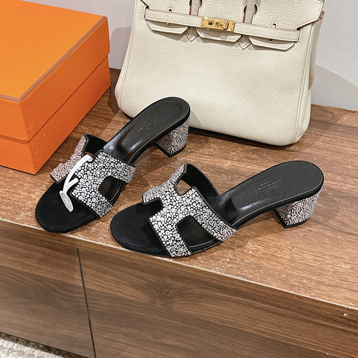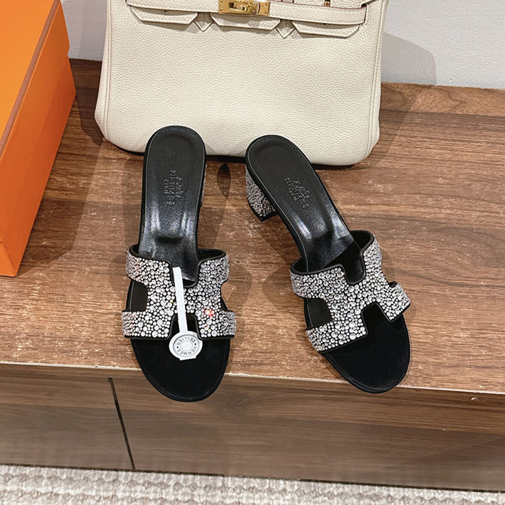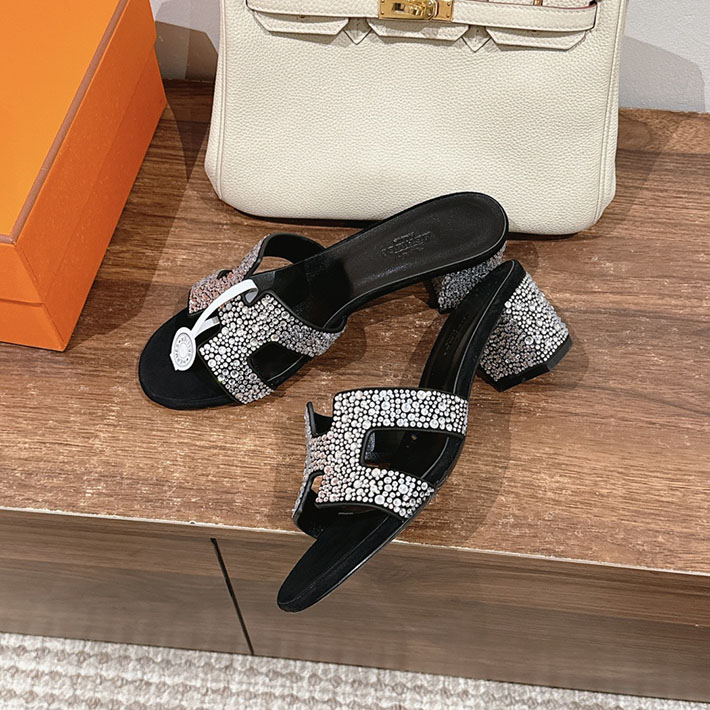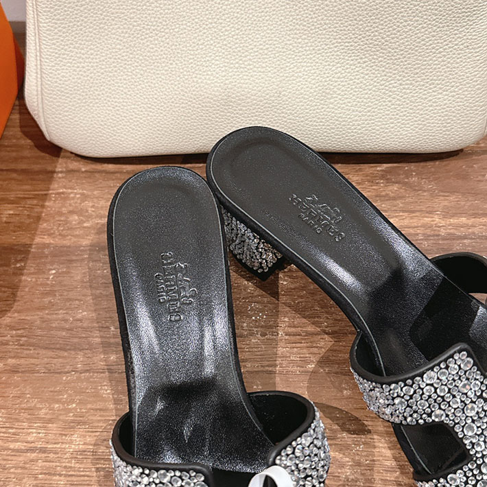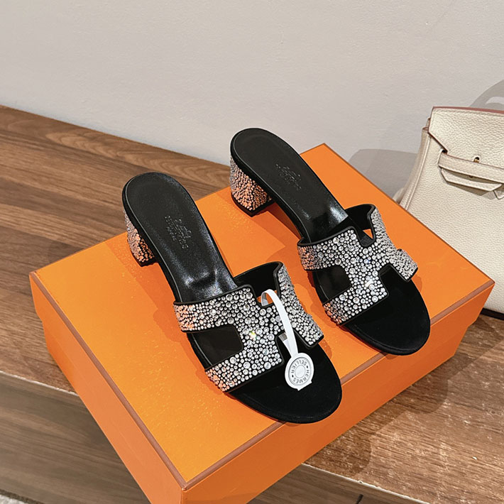 Hermes エルメス サンダル ヒール 5cm 黒 ブラック 2521010 エルメス サンダル オラン レディース