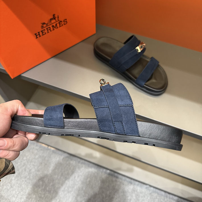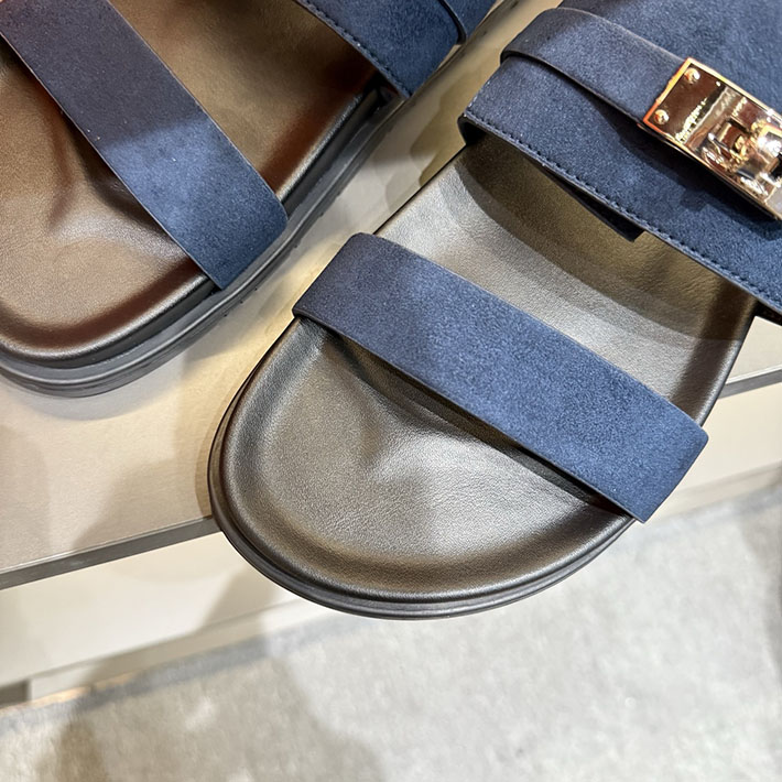エルメス アルル サンダル ミュール メンズシューズ HERMES Arles mule ブラック/ブルー 2521154 エルメス サンダル メンズ 人気