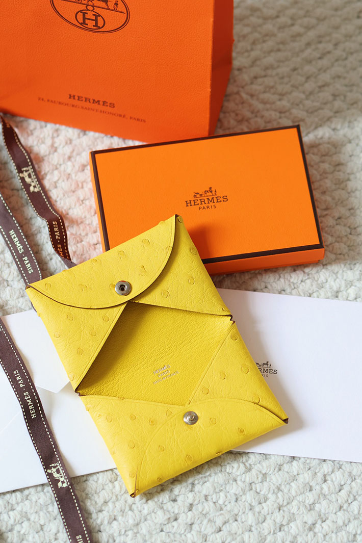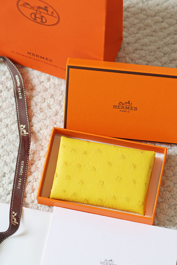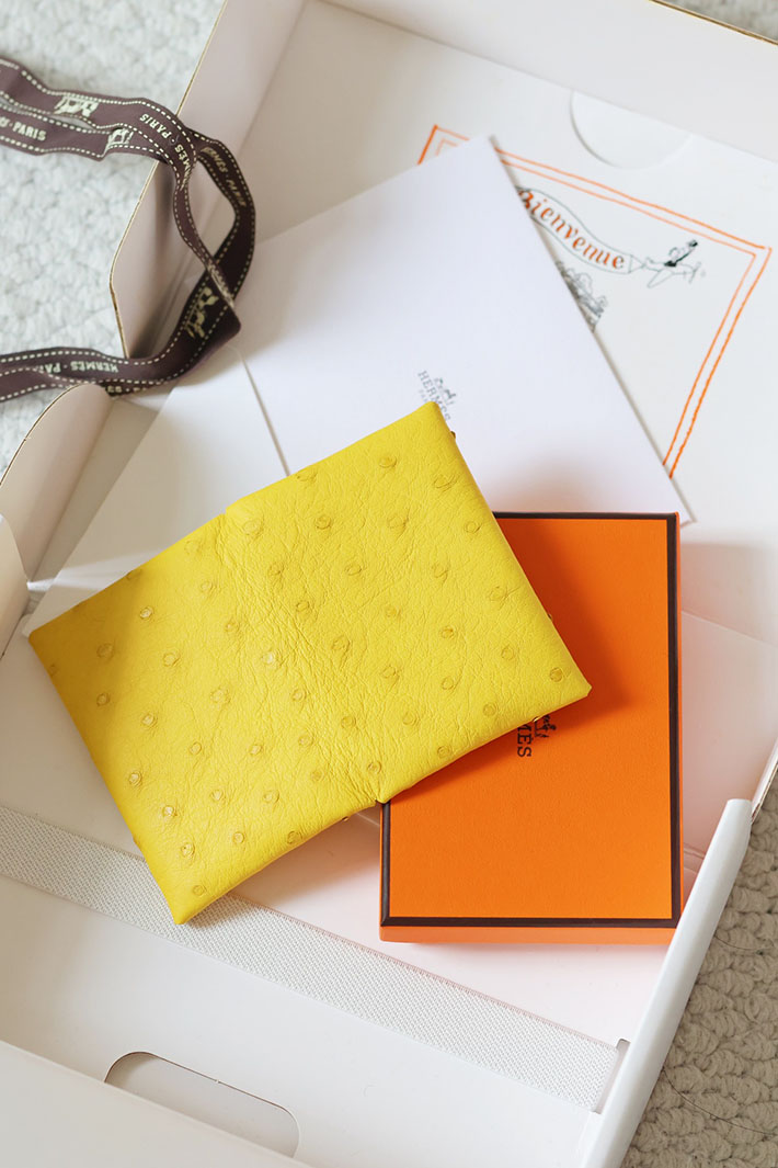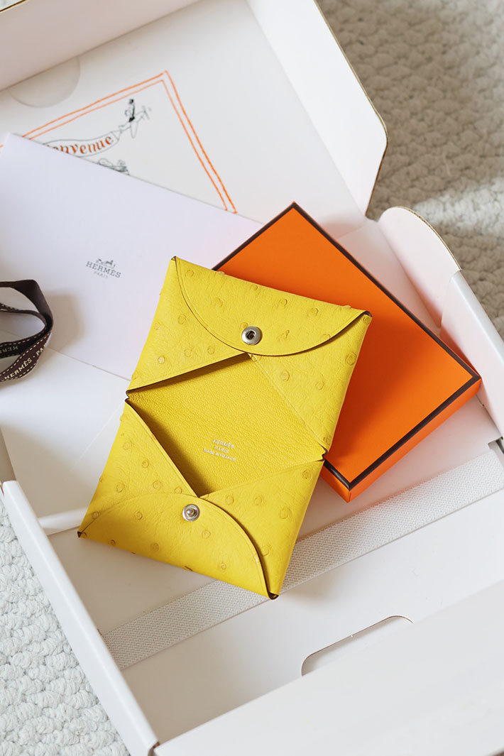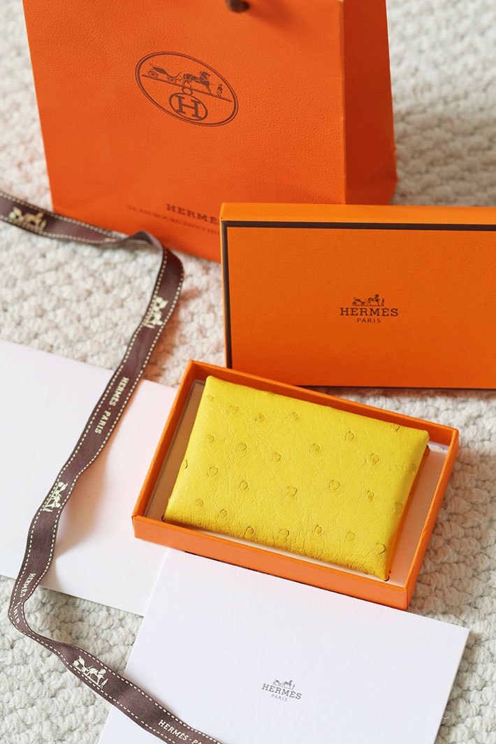 エルメス 名刺入れ HERMES カルヴィ カードケース ジョーヌシトロン オーストリッチ シルバー金具 2518379 エルメス 名刺入れ レディース