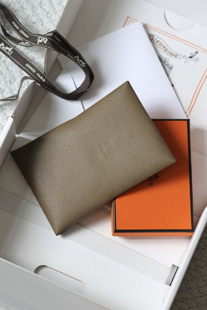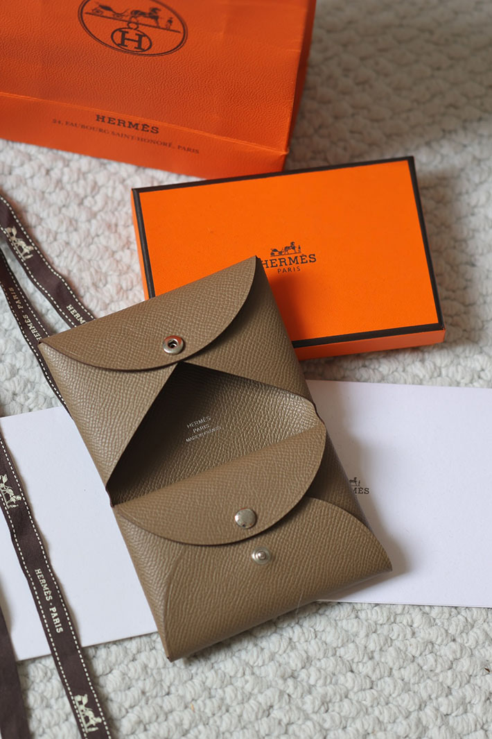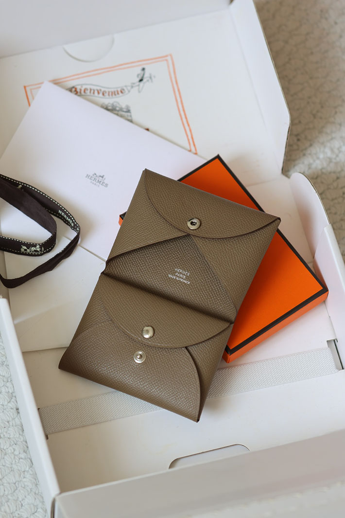 エルメス カルヴィ デュオ コインケース付きカードケース エトゥープ ヴォーエプソン シルバー金具 2518385 エルメスオンライン カルヴィデュオ