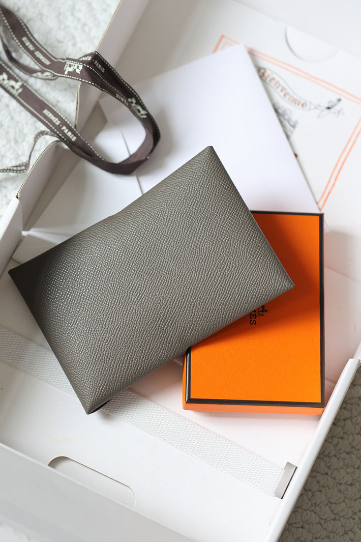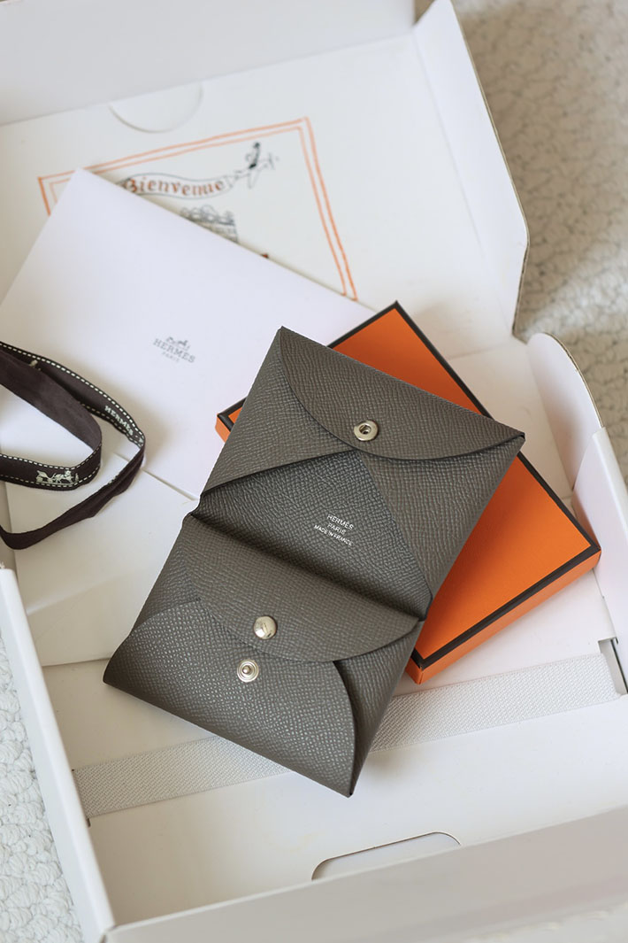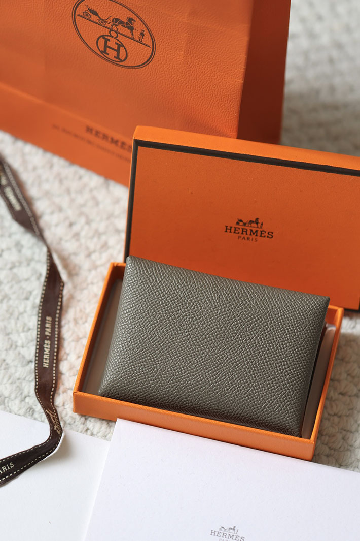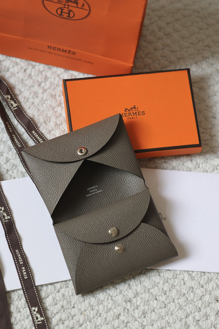 エルメス カルヴィ デュオ コインケース付きカードケース エタン ヴォーエプソン シルバー金具 2518387 エルメスオンライン カルヴィデュオ