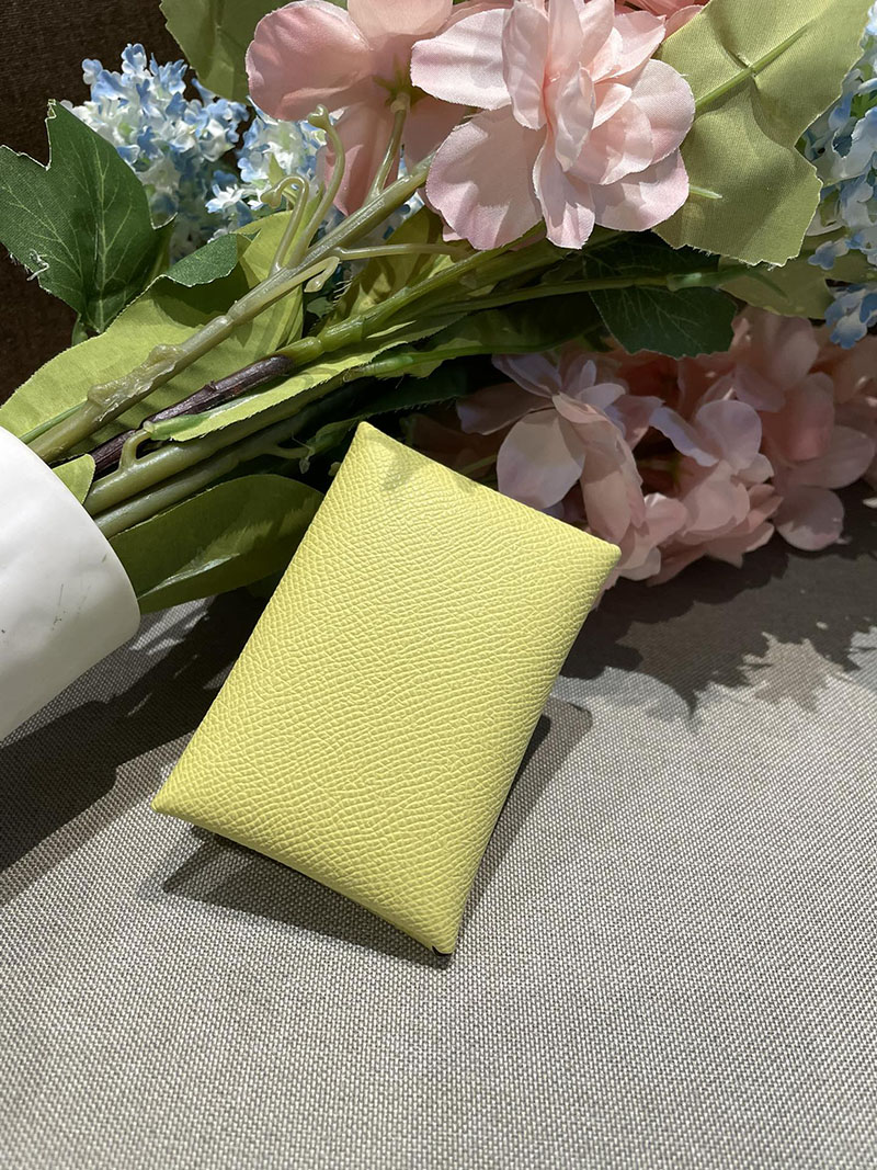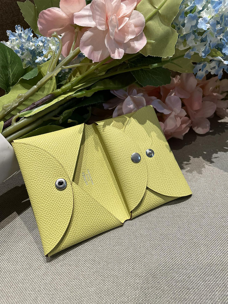 超N品 エルメス カルヴィ デュオ コインケース付きカードケース ジョーヌプッサン ヴォーエプソン シルバー金具 2520813 エルメス コインケース レディース