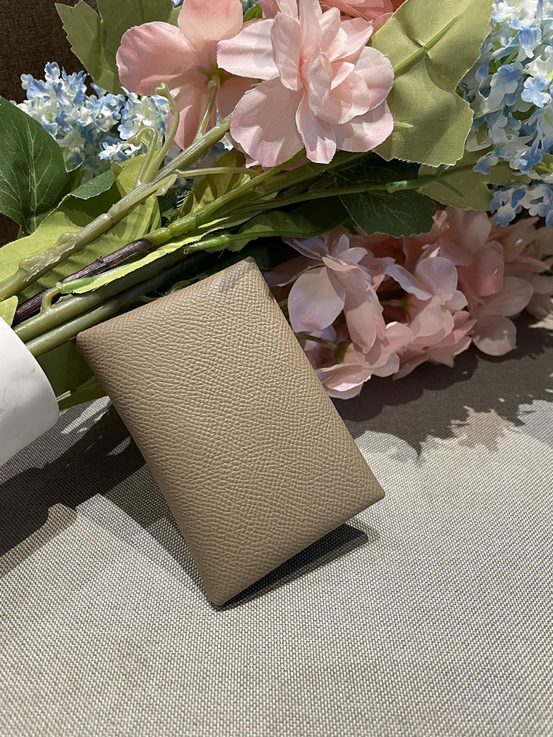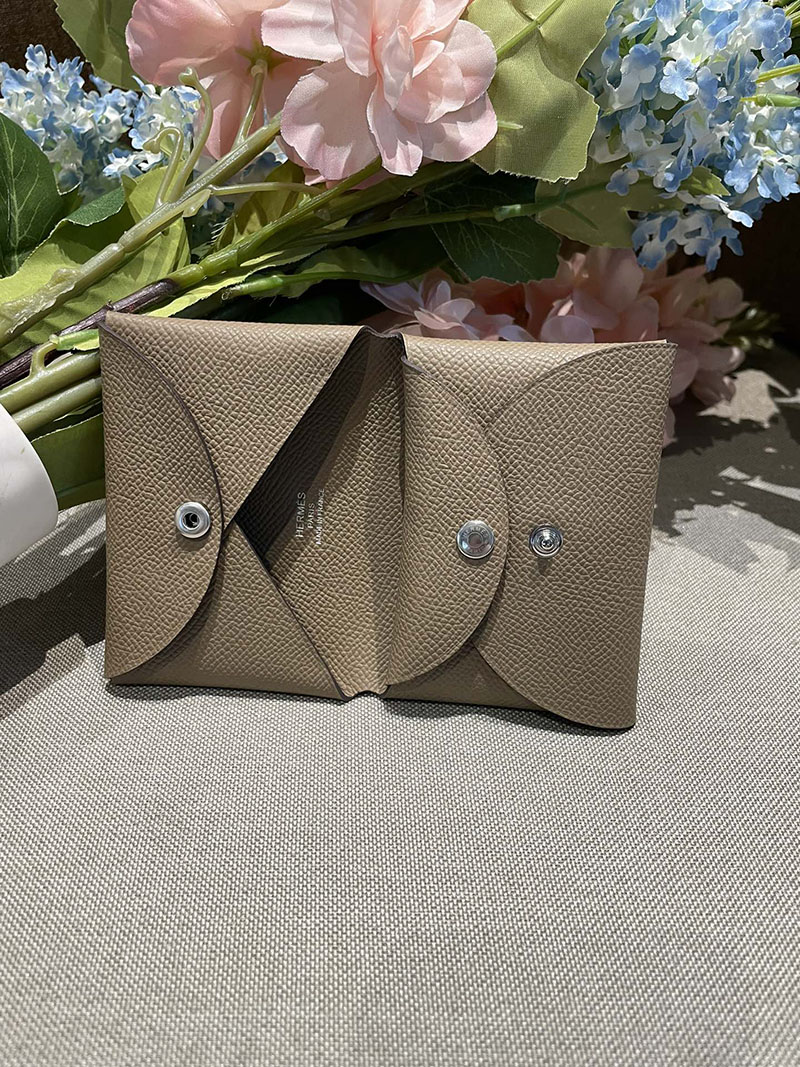 超N品 エルメス カルヴィ デュオ コインケース付きカードケース エトゥープ ヴォーエプソン シルバー金具 2520816 エルメス コインケース 公式