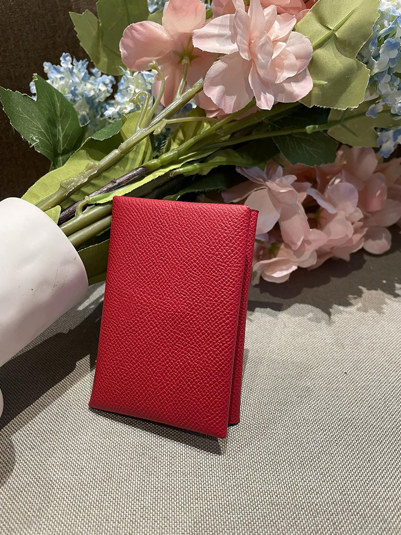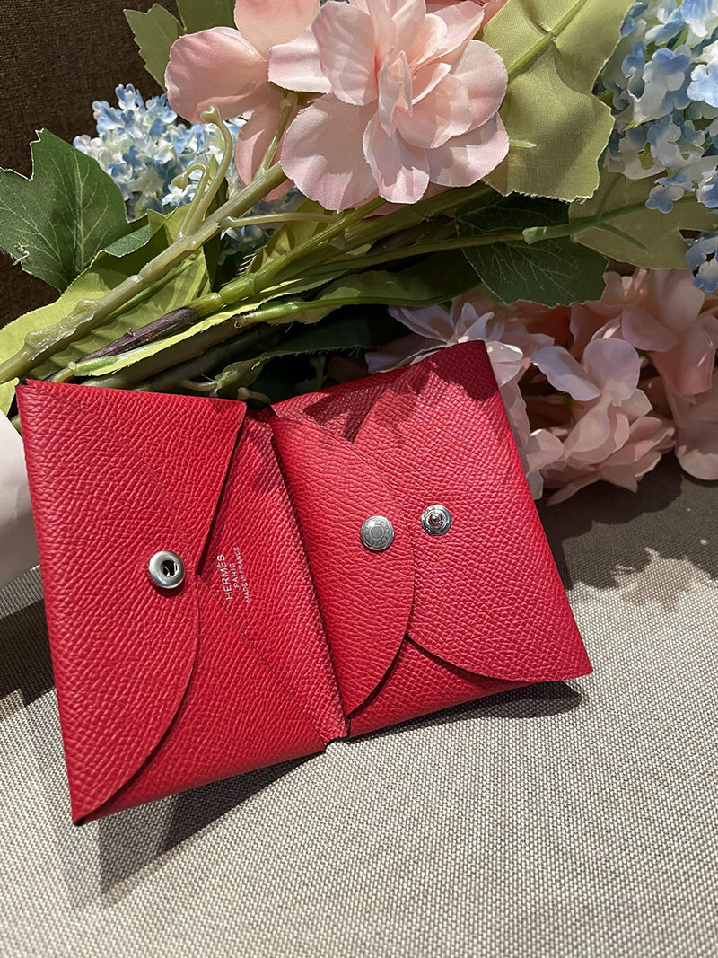 超N品 エルメス カルヴィ デュオ コインケース付きカードケース ルージュカザック ヴォーエプソン シルバー金具 2520820 エルメス カルヴィデュオ 公式