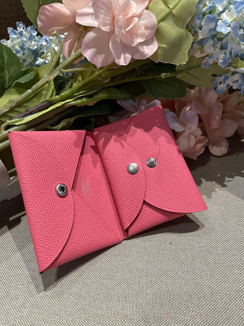 超N品 エルメス カルヴィ デュオ コインケース付きカードケース ローズアザレ ヴォーエプソン シルバー金具 2520821 カルヴィデュオ 人気色