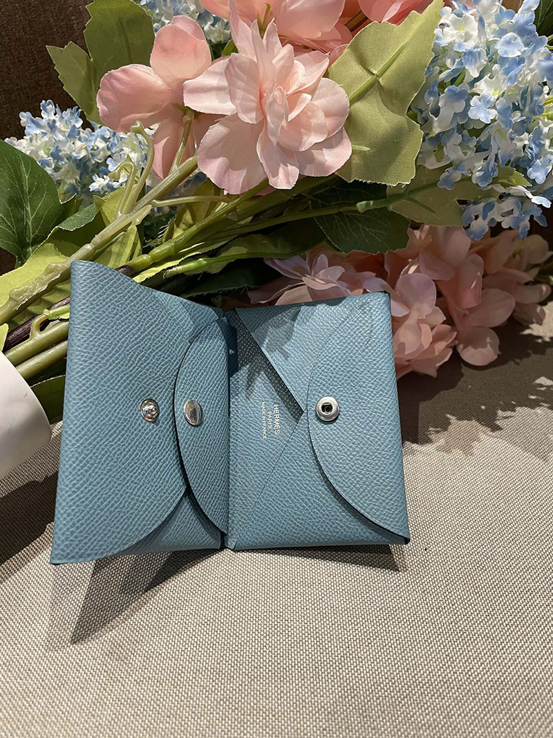 超N品 エルメス カルヴィ デュオ コインケース付きカードケース ヴェールアマンド ヴォーエプソン シルバー金具 2520822 カルヴィデュオ 財布代わり