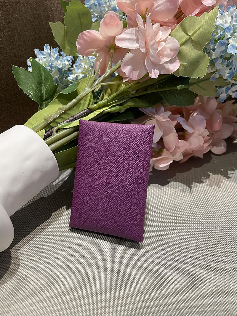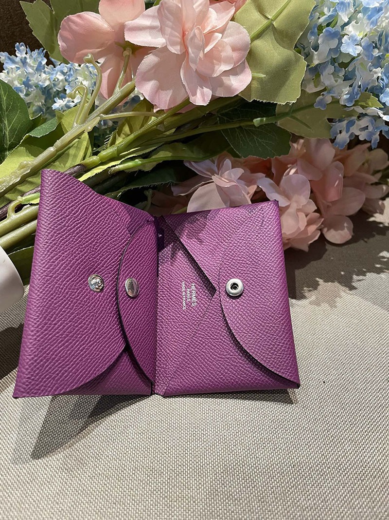 超N品 エルメス カルヴィ デュオ コインケース付きカードケース アネモネ ヴォーエプソン シルバー金具 2520823 エルメス カルヴィ 財布