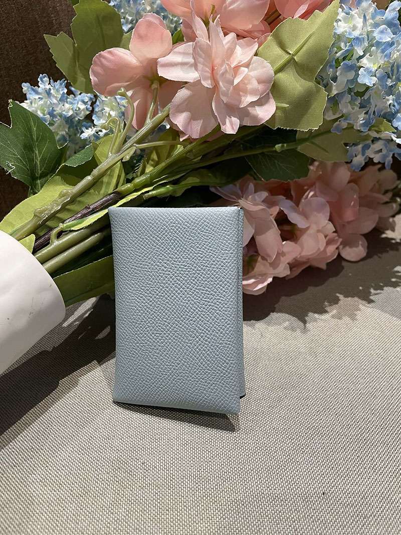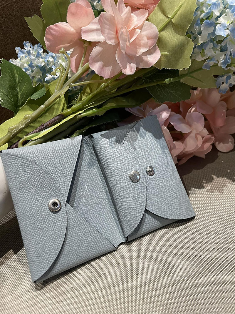 超N品 エルメス カルヴィ デュオ コインケース付きカードケース ブルーラン ヴォーエプソン シルバー金具 2520827 エルメス カルヴィ 公式