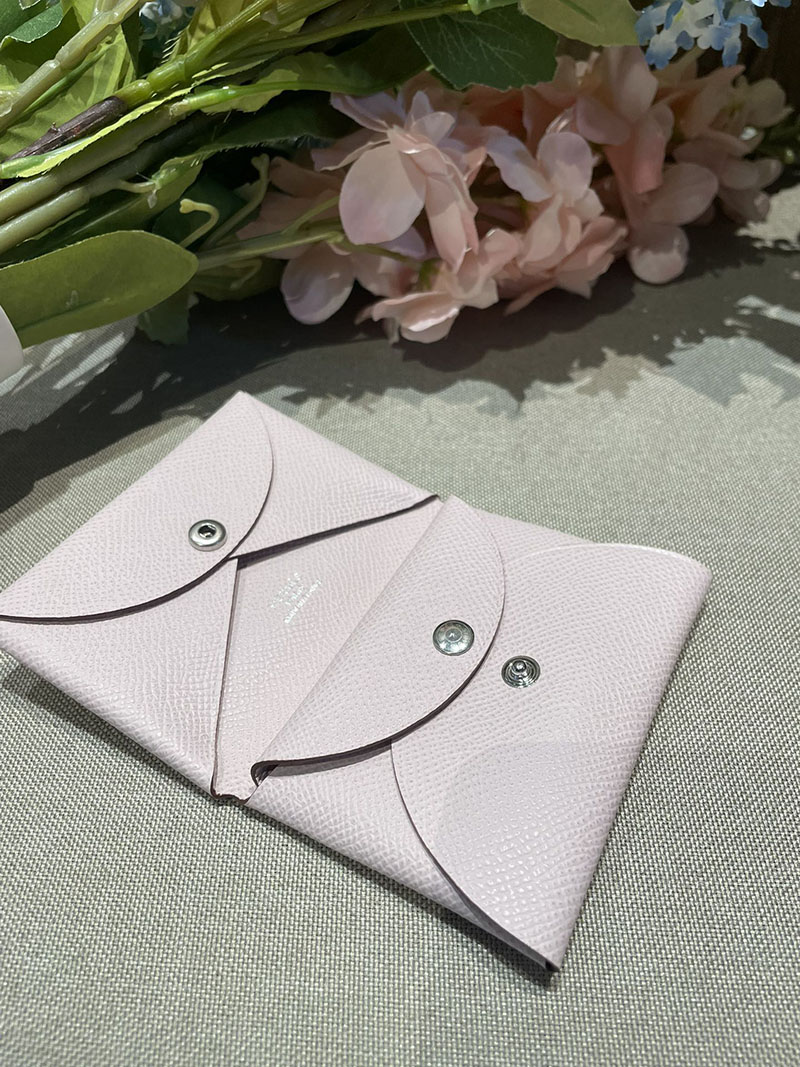 超N品 エルメス カルヴィ デュオ コインケース付きカードケース モーヴペール ヴォーエプソン シルバー金具 2520829 エルメス カルヴィデュオ