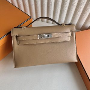 エルメス バッグ 定価 HERMES ケリーデペッシュ25 エトゥープ ヴォーエプソン シルバー金具 2526301 ケリーデペッシュ 定価