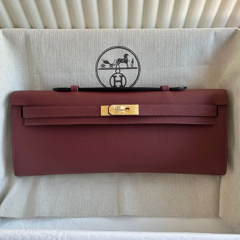 並行輸入品 HERMES ケリーカット ルージュアッシュ ヴォーエプソン ゴールド金具 2521316 エルメス ケリーカット