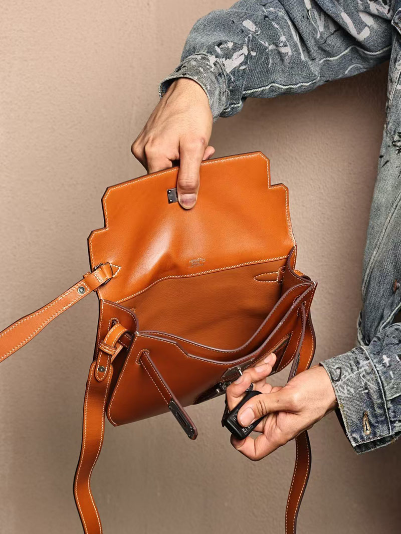 エルメスコピー ケリーデペッシュ25 定価 HERMES ケリーデペッシュ25 ゴールド ボックスカーフ シルバー金具 2524070